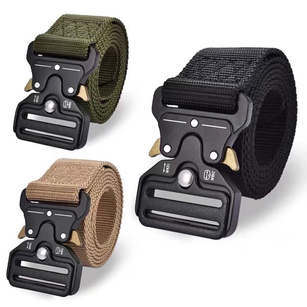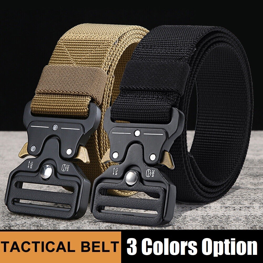 2Pcs Men's Tactical Belt Heavy Duty Webbing Strip Metal Buckle Mesh Gun Belt USA