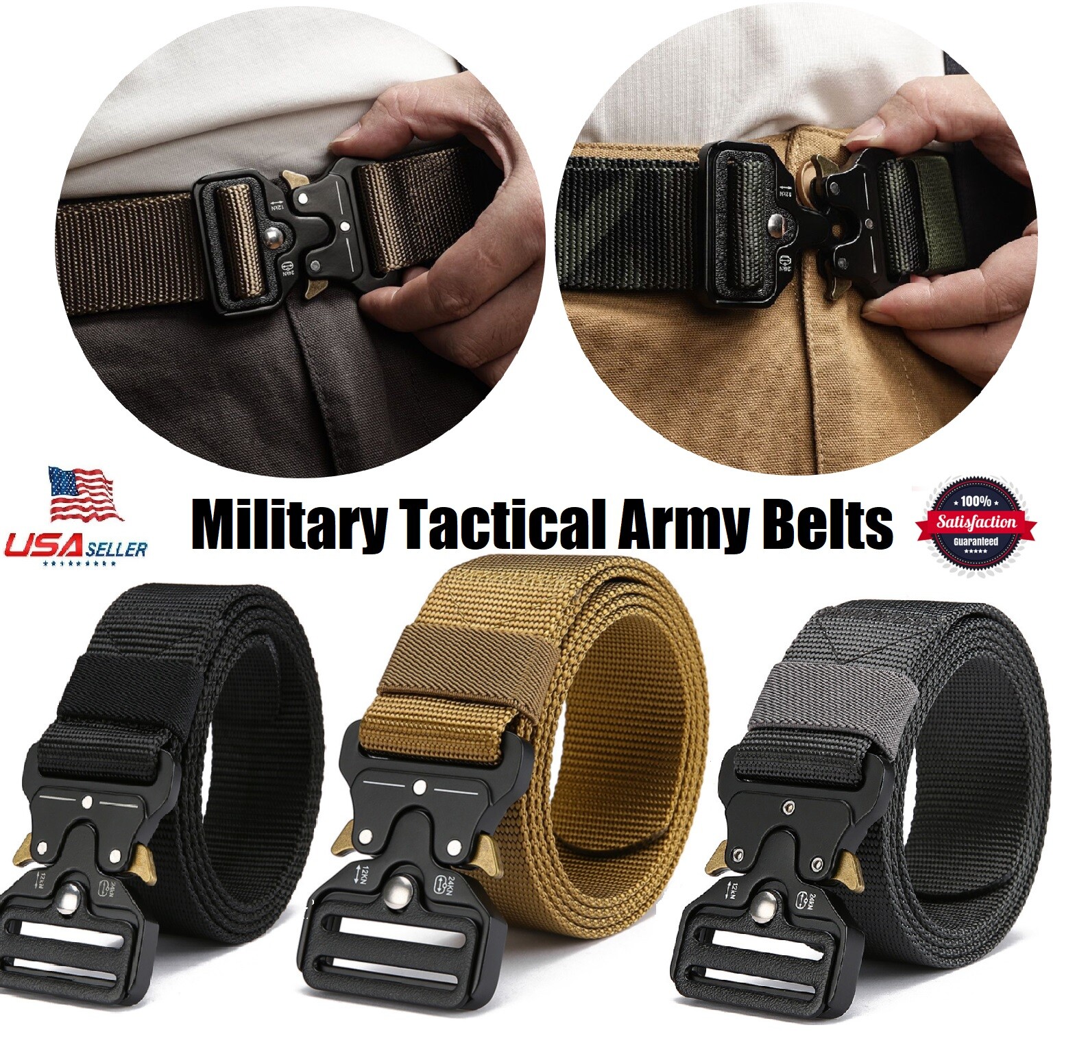 как выглядит 2Pcs Mens Tactical Belt Heavy Duty Webbing Strip Metal Buckle Mesh Gun Belt USA фото