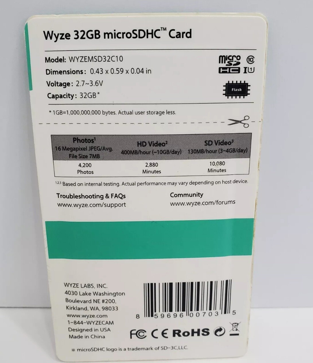 Wyze Expandable Storage 32GB MicroSDHC Card Class 10, Black - ORIGINAL NEW