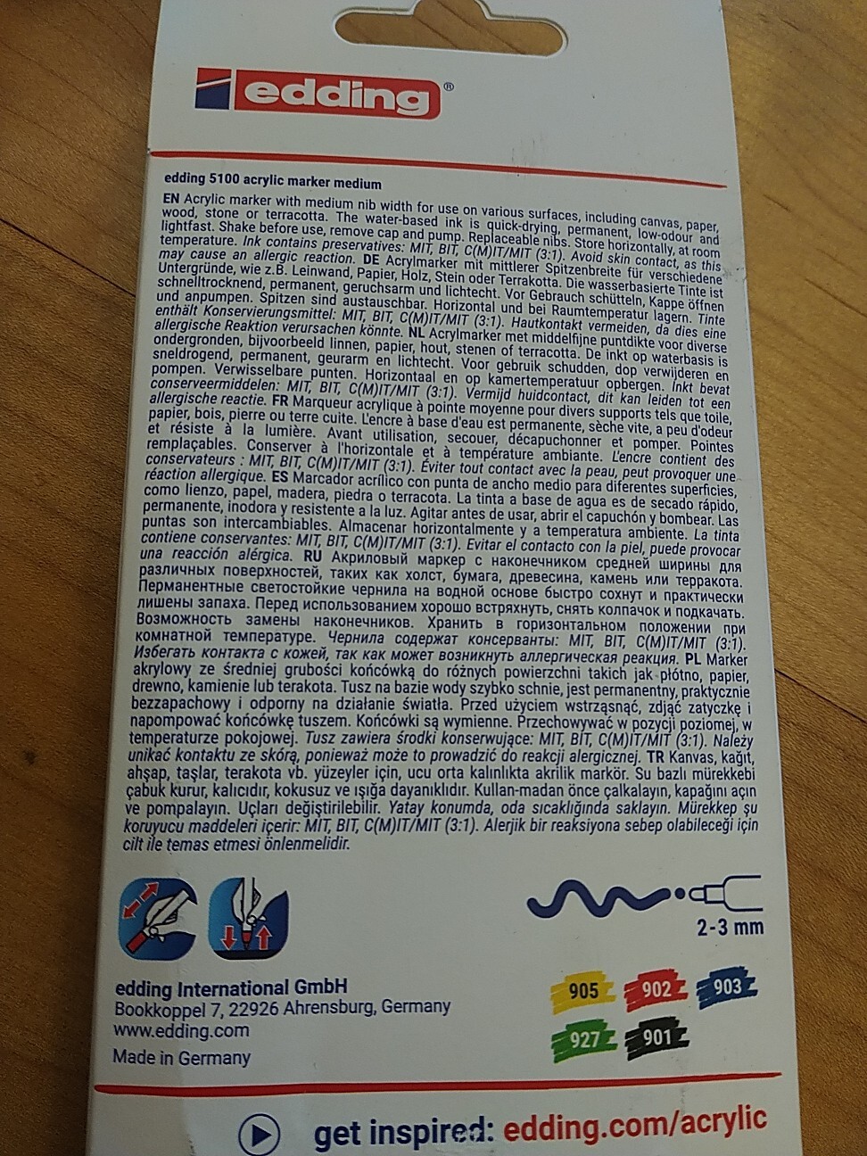 Acrylic Paint Markers Edding 5100 U.S. Seller Medium Basic Colours Pack 5 NIB