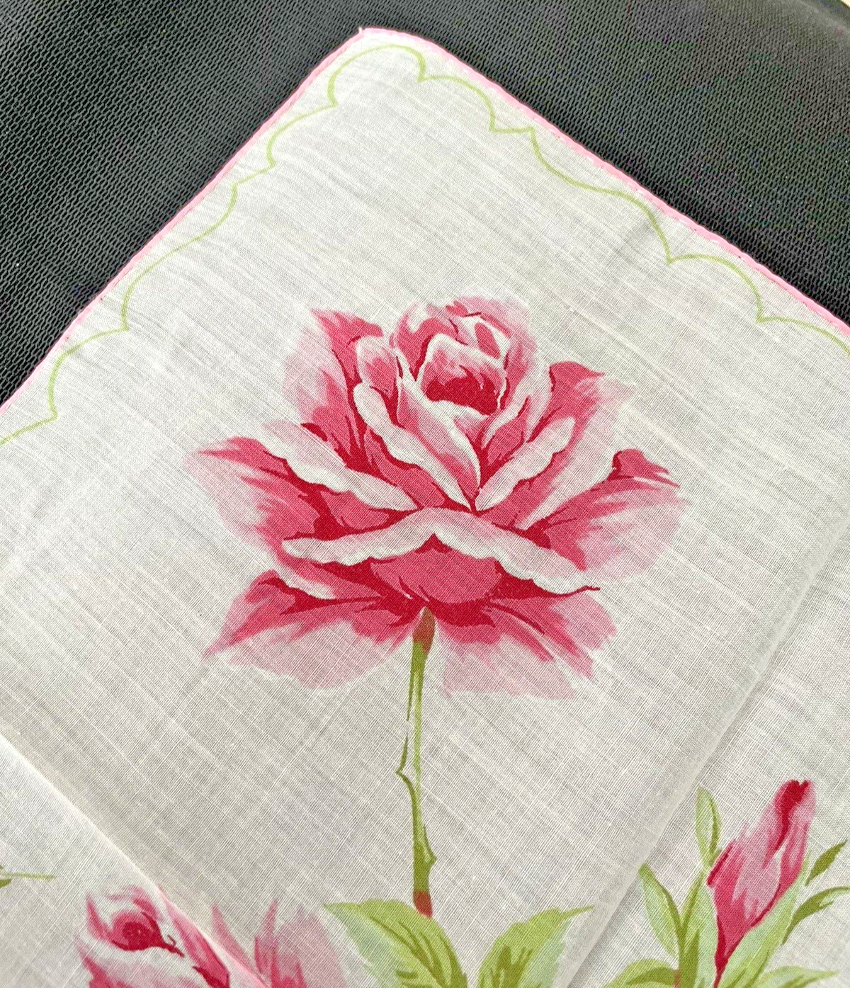 как выглядит SIMPLE ELEGANCE, 1960 LARGE ROSE HANDKERCHIEF, SILKY SMOOTH, 16" SQ, FINE FAB фото