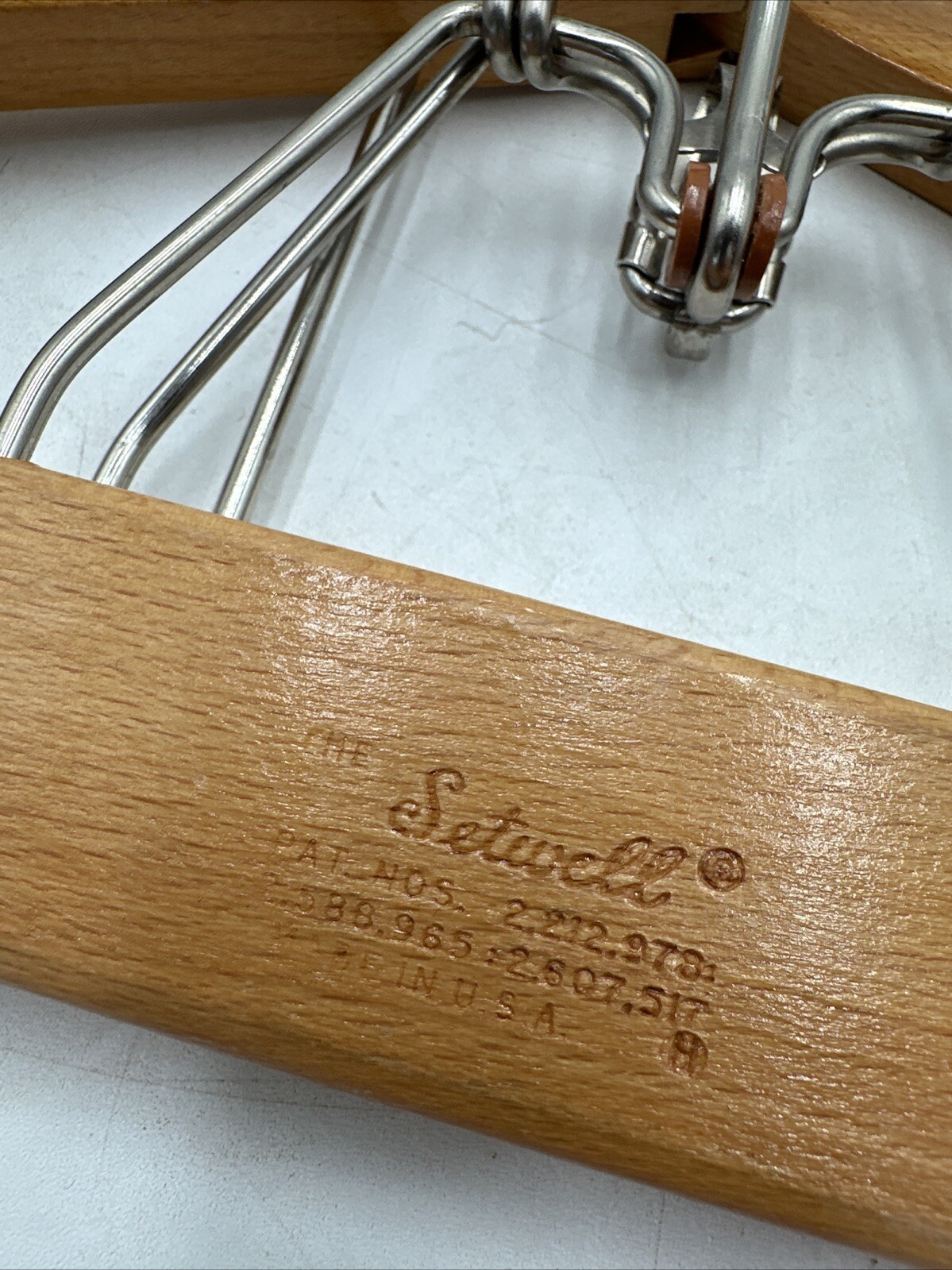 Vintage The Setwell 18 Solid Wood Suit Coat Clothes Hanger w/ Pant Clamp USA