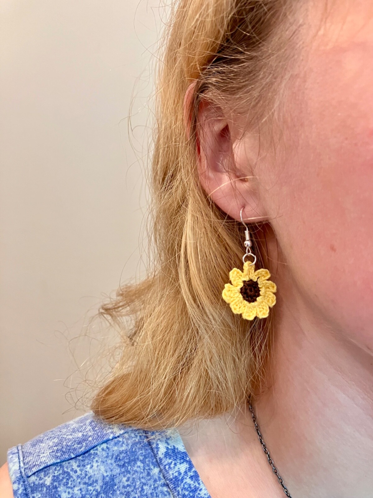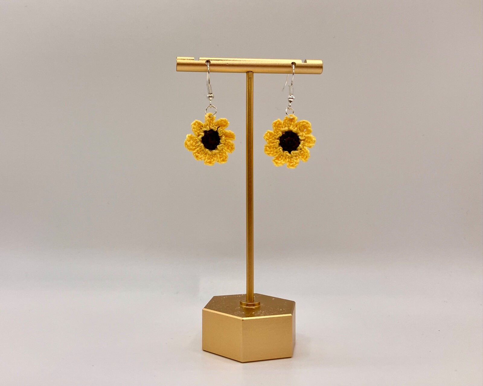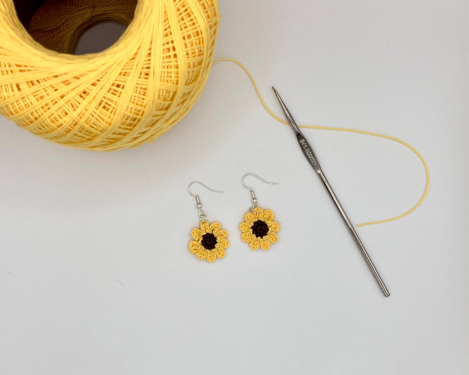 Sunflower Earrings Dangle Micro Crochet Hypoallergenic Handmade