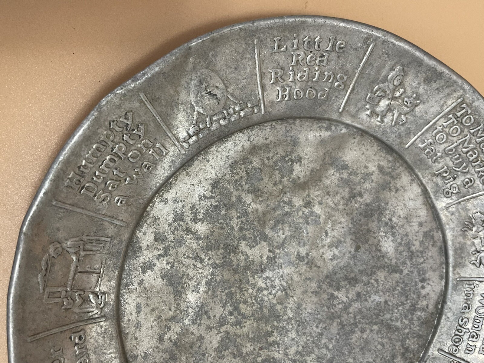 Vintage Child s Pressed Tin Plate with Nursery Rhyme Border