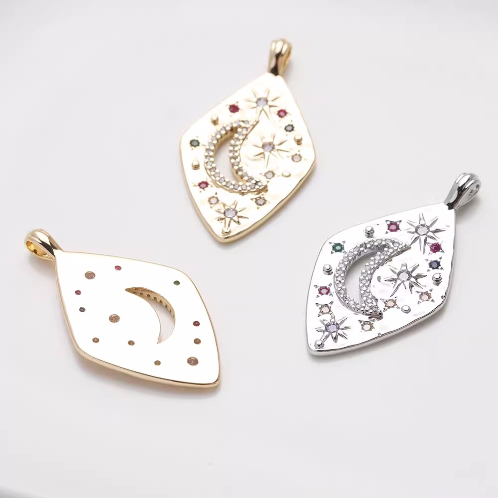 2pcs Cubic Zirconia Moon Pendant,CZ Pave Rhombus Moon Charm,Medallion Pendant