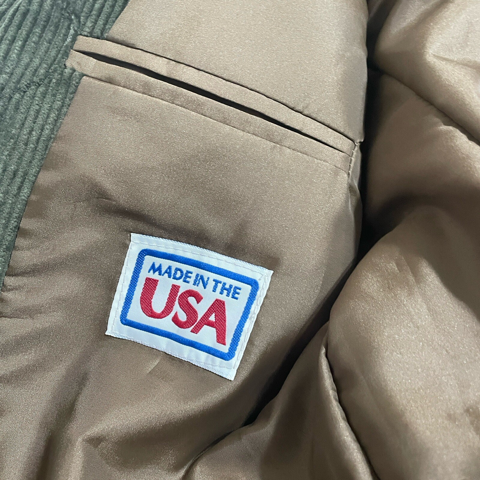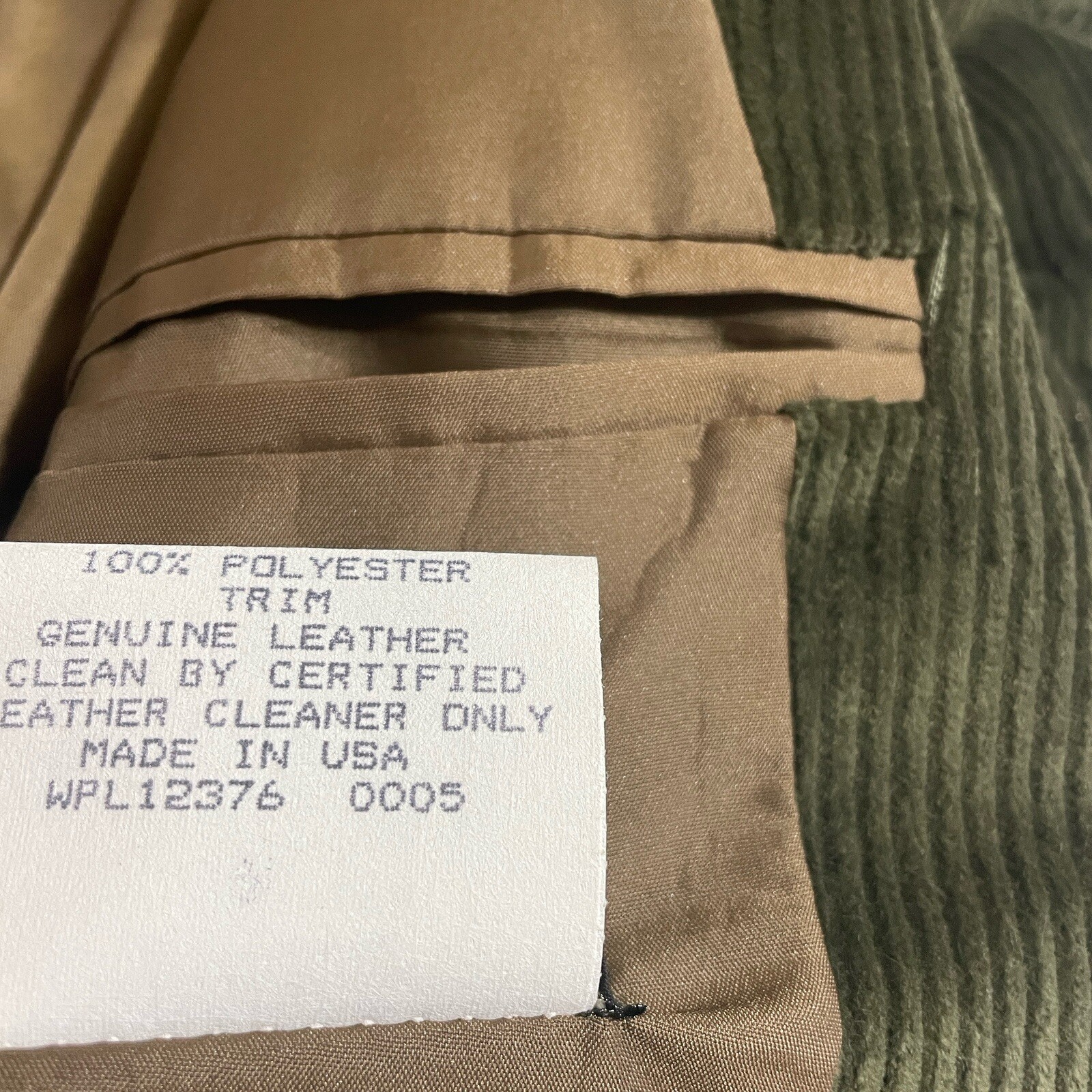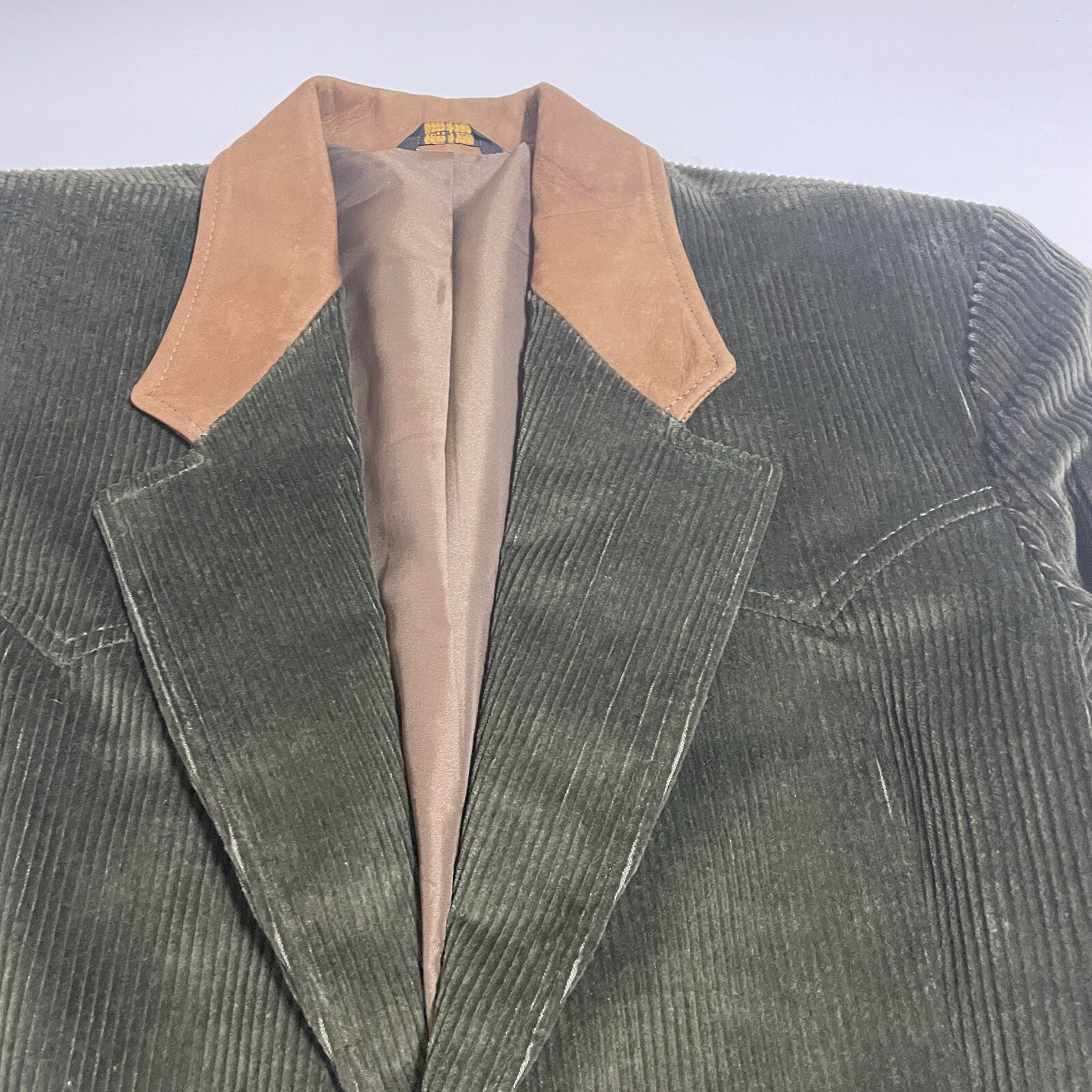 Vtg Western Pioneer Wear Western Corduroy Olive Blazer Mens 44 Leather Trim