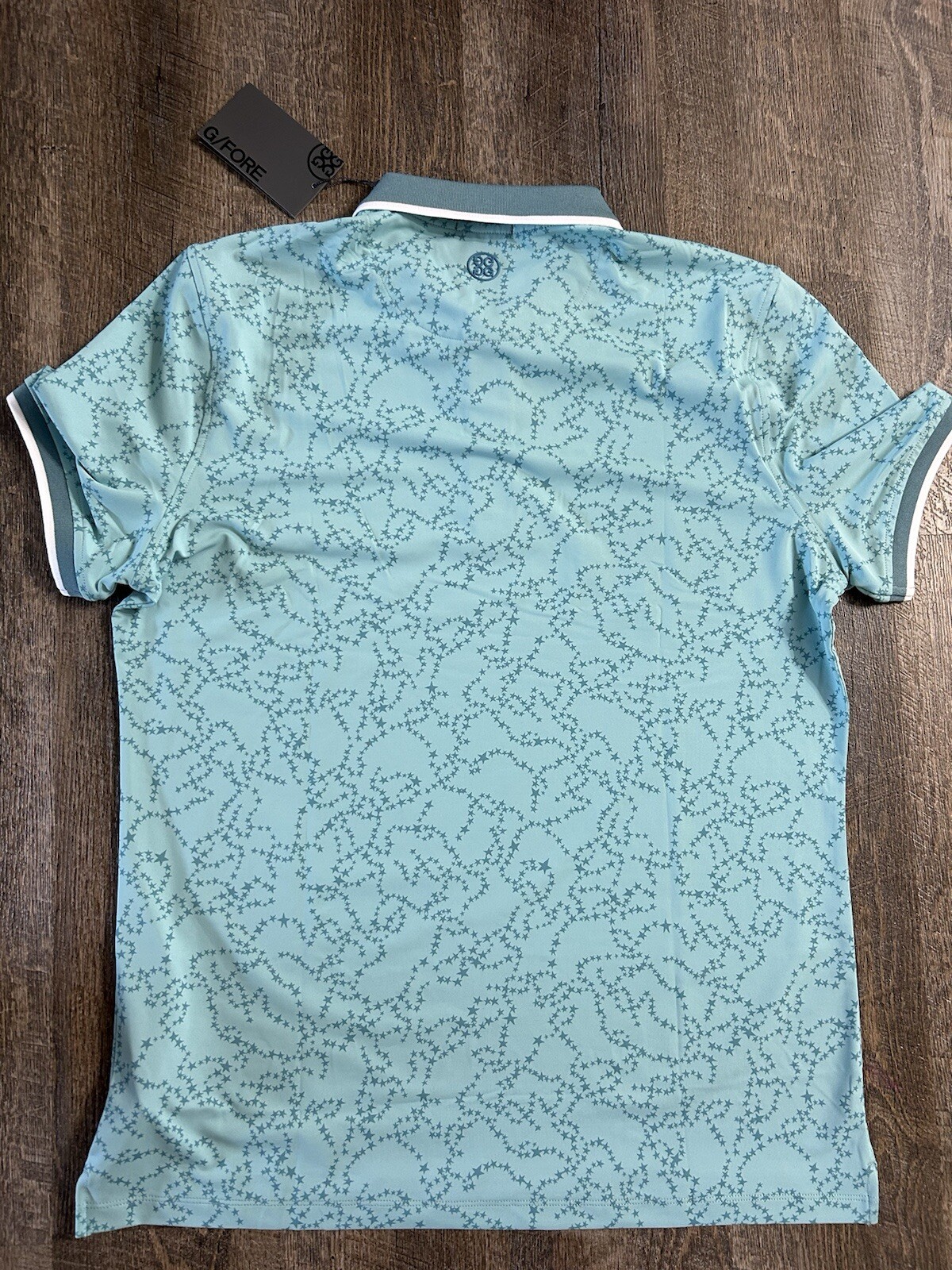 как выглядит G/FORE 2023 Star Dust Banded Sleeve Tech Jersey Golf Polo Shirt Medium NWT фото