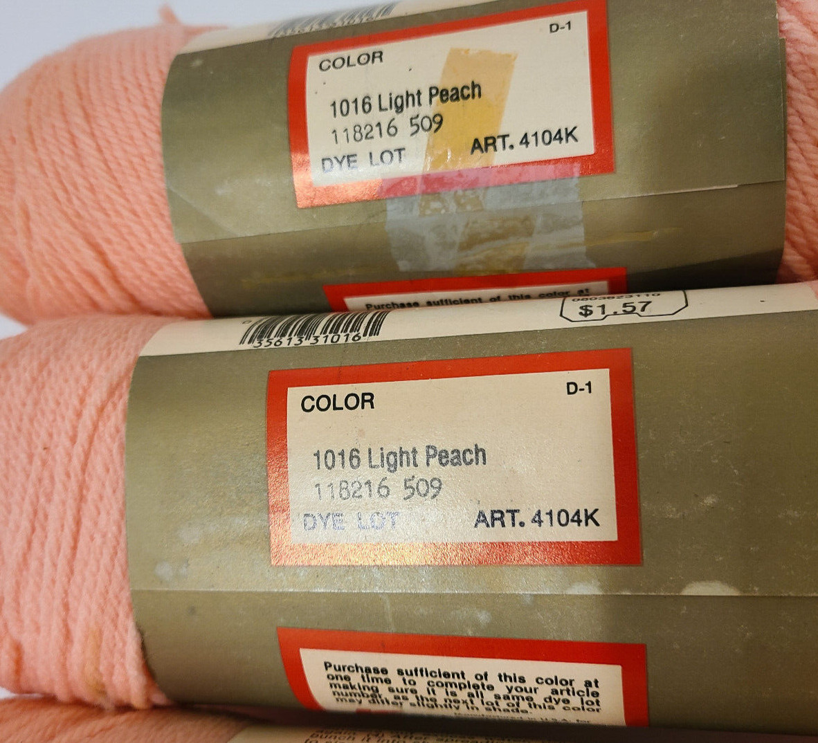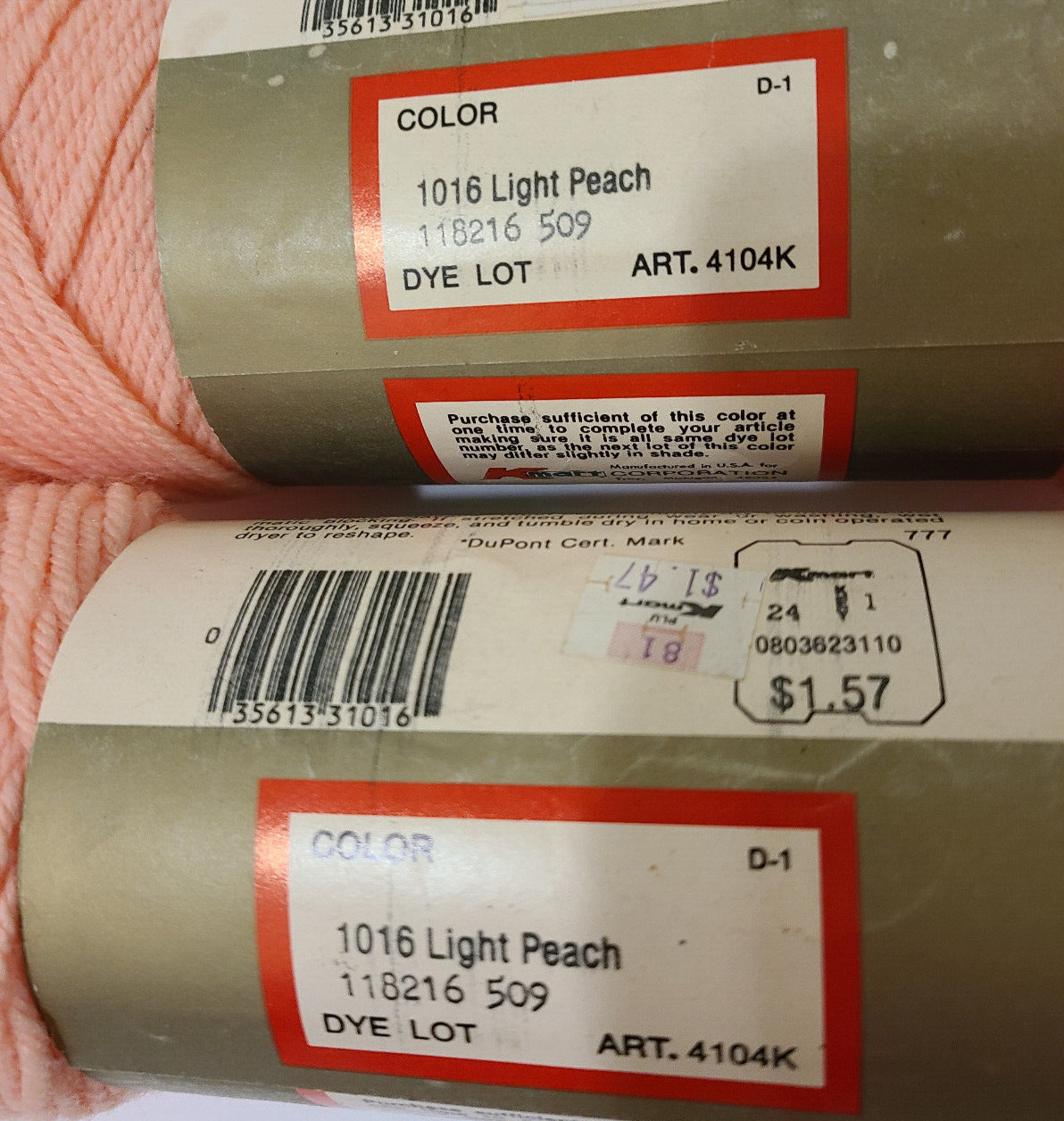 VTG Kmart Sayelle 4Ply Worsted Acrylic Yarn Light Peach 1016 4oz Lot of 4 Skeins