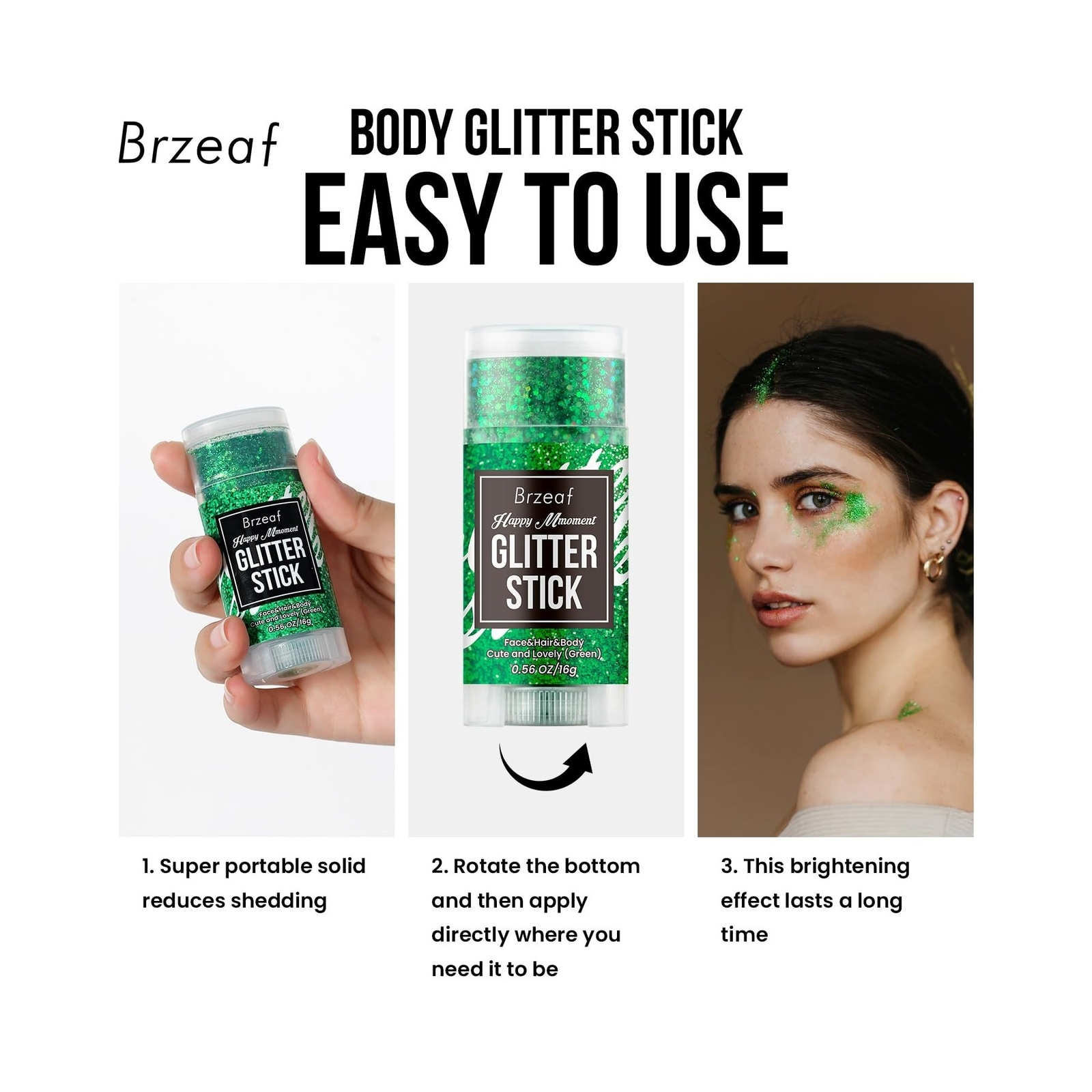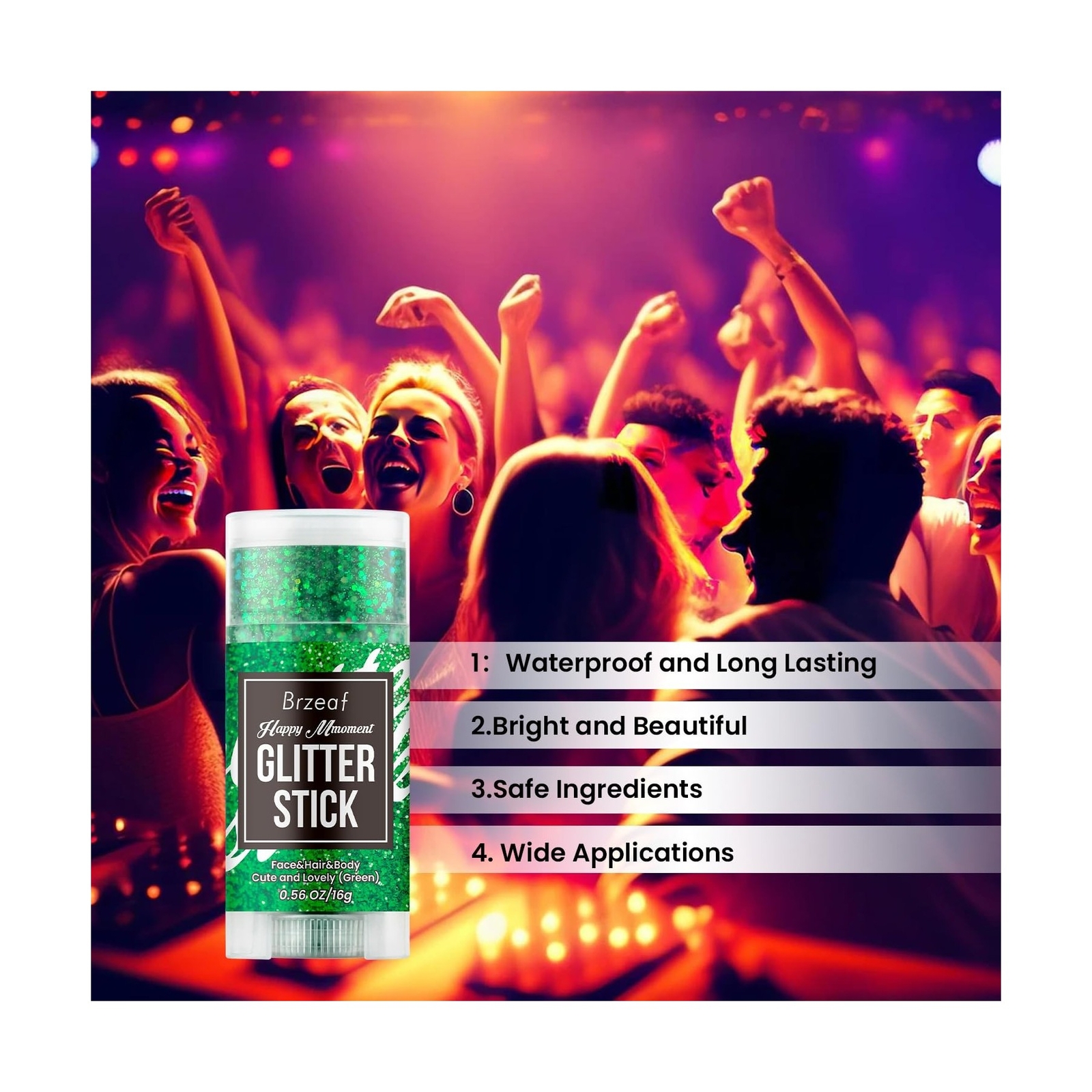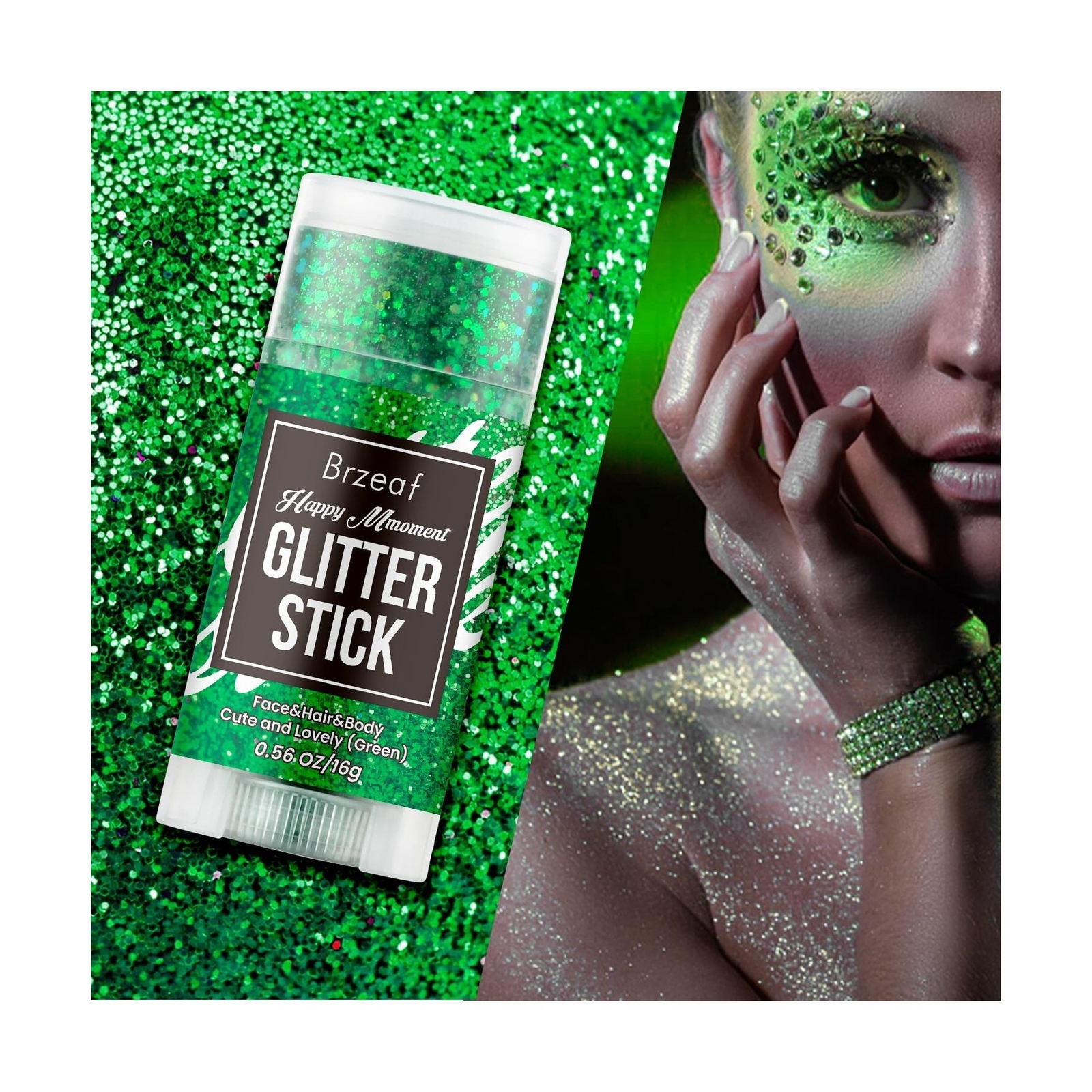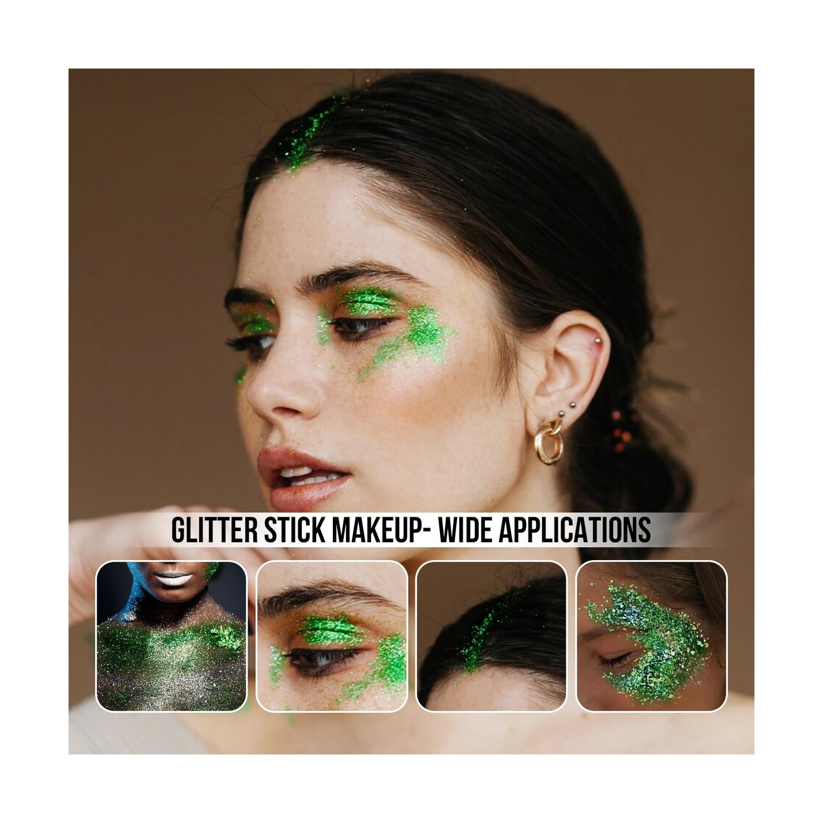 Waterproof Green Glitter Stick, Chunky Glitter for Face/Body/Hair/Eyes/Lip, S...
