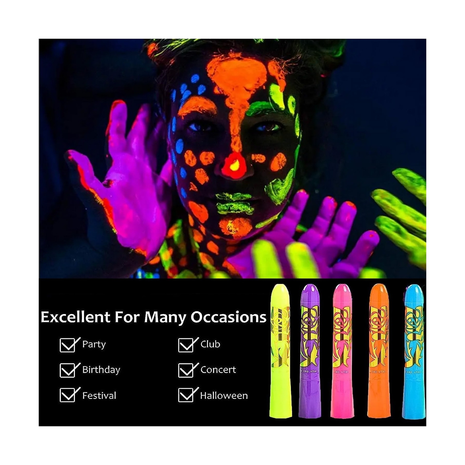 как выглядит 12 Pieces Glow Blacklight Face Body Paint Makeup, Glow in The Dark Face Pai... фото
