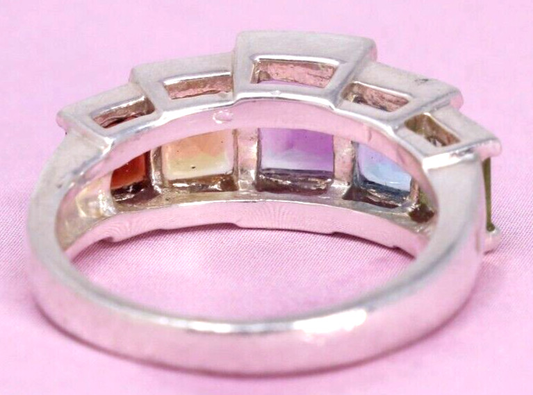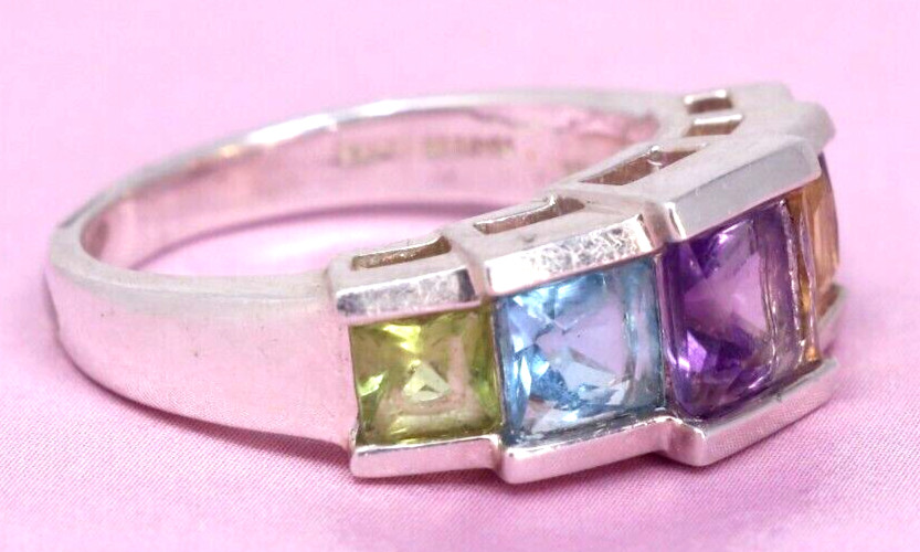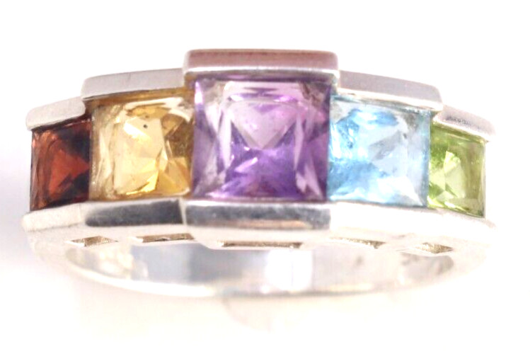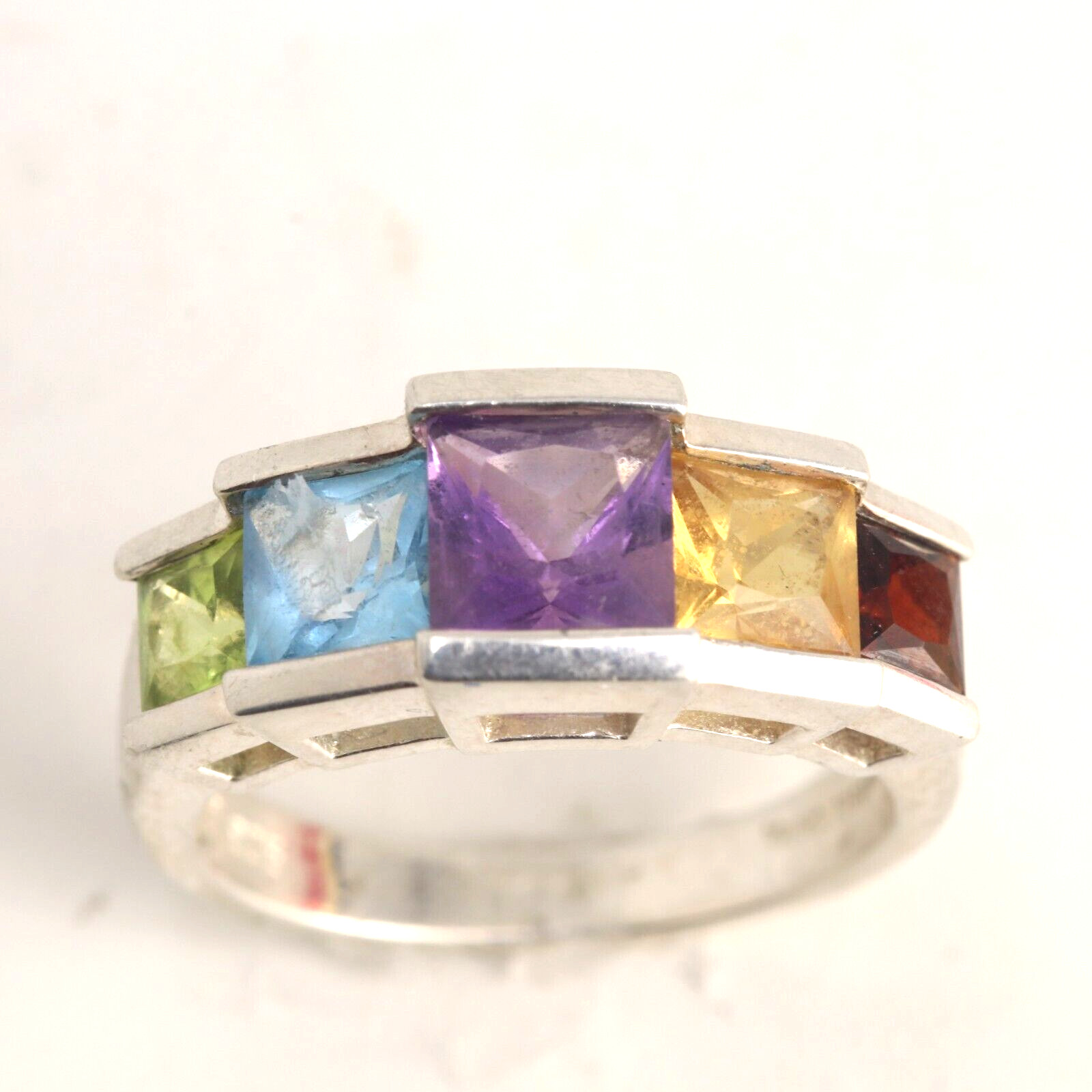 925 Sterling Silver Natual Amethyst Blue Topaz Citrine Garnet Peridot Ring SZ 7