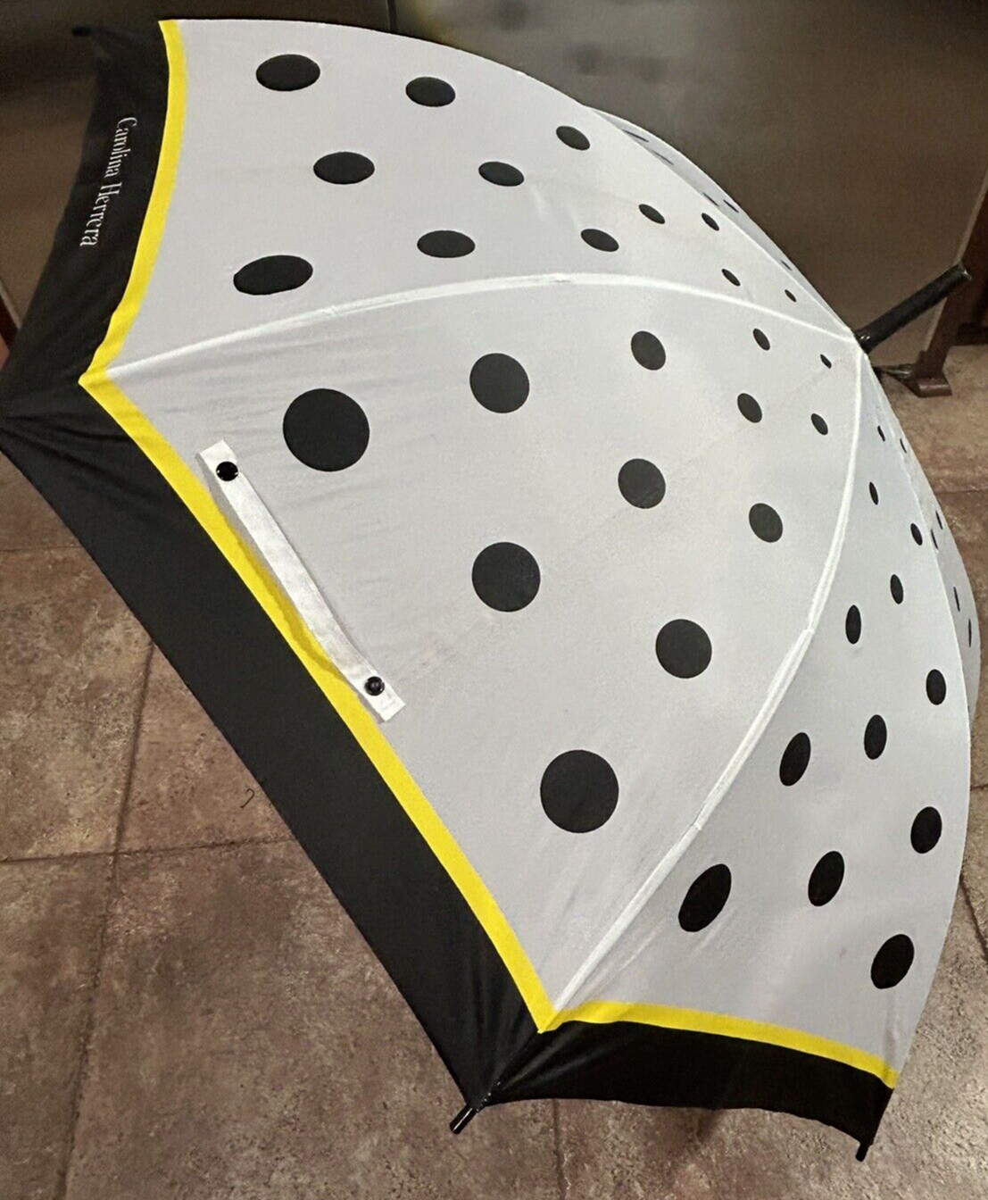 VINTAGE CAROLINA HERRERA WHITE with BLACK POLKA DOTS YELLOW BLACK TRIM NEW OS