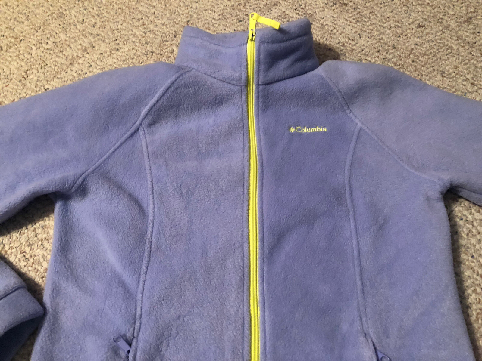 как выглядит Columbia Jacket Full Zip Purple Lavender Youth 18 20 Fleece Great Condition фото