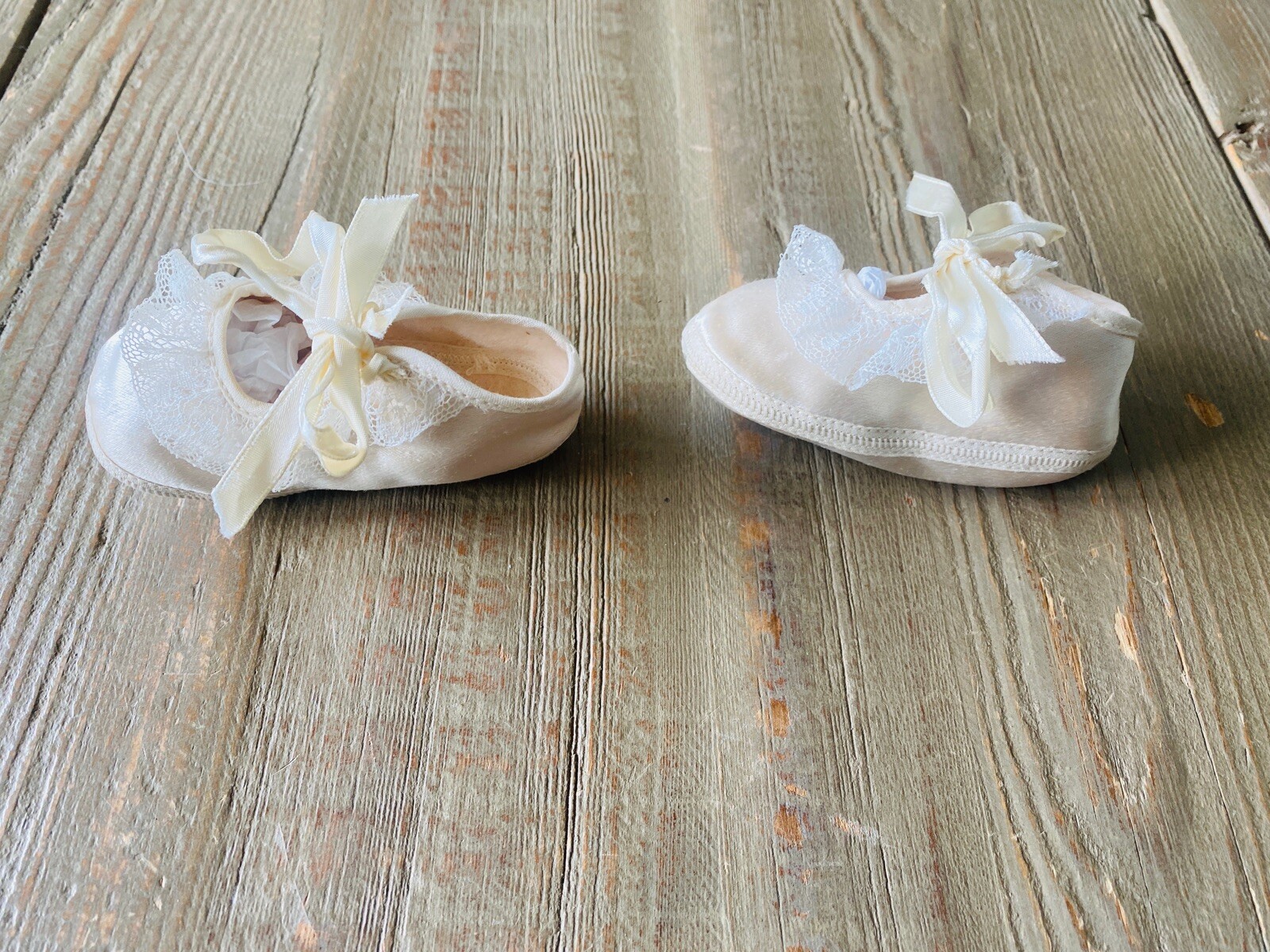как выглядит Vtg Mrs. Days Ideal Baby Shoes Size 1 Ivory with Matching Ivory Sateen Socks фото