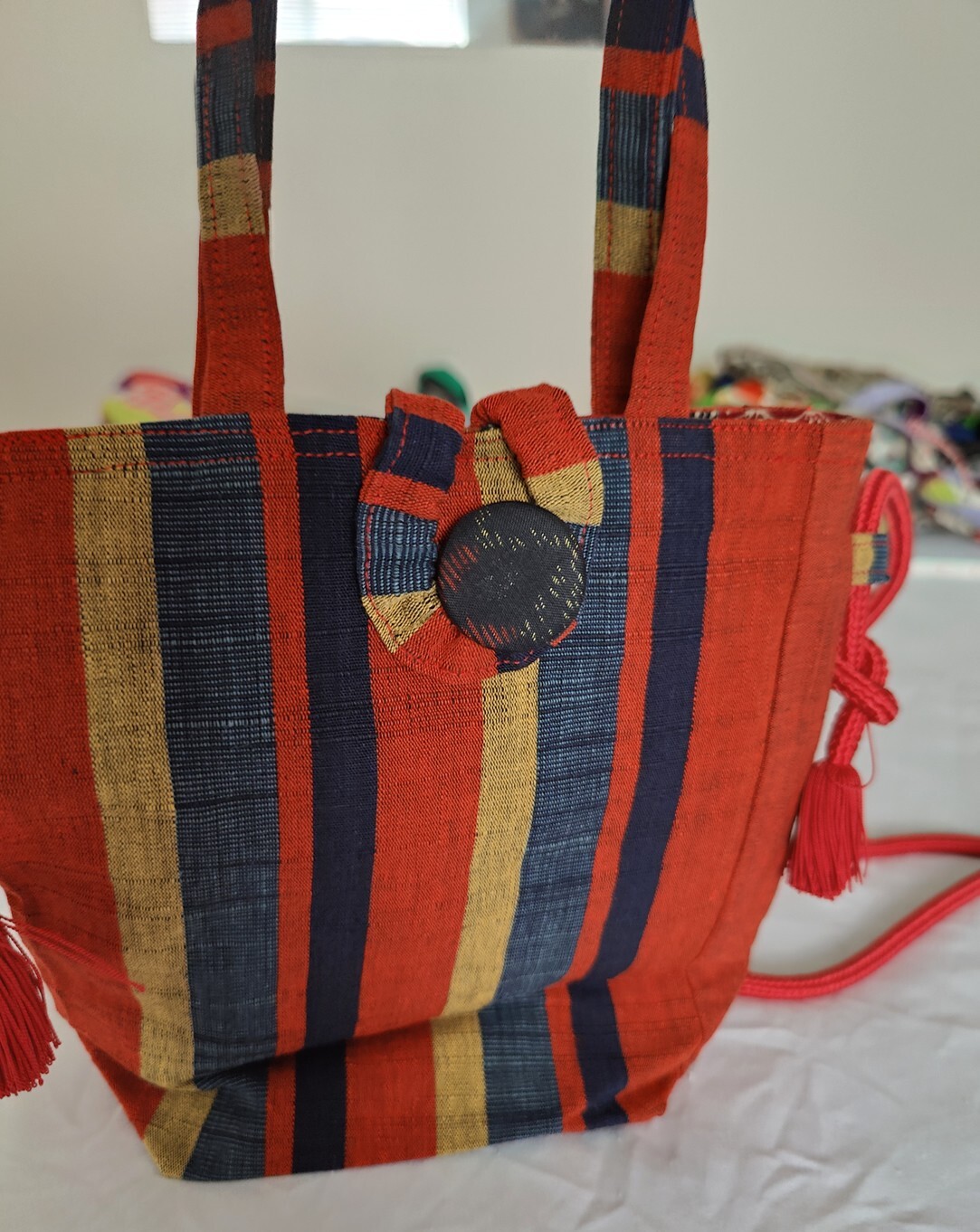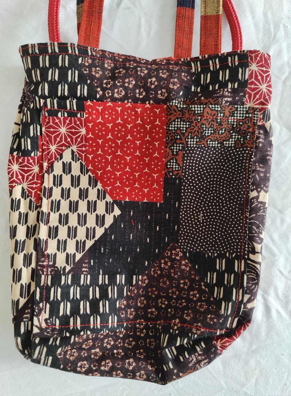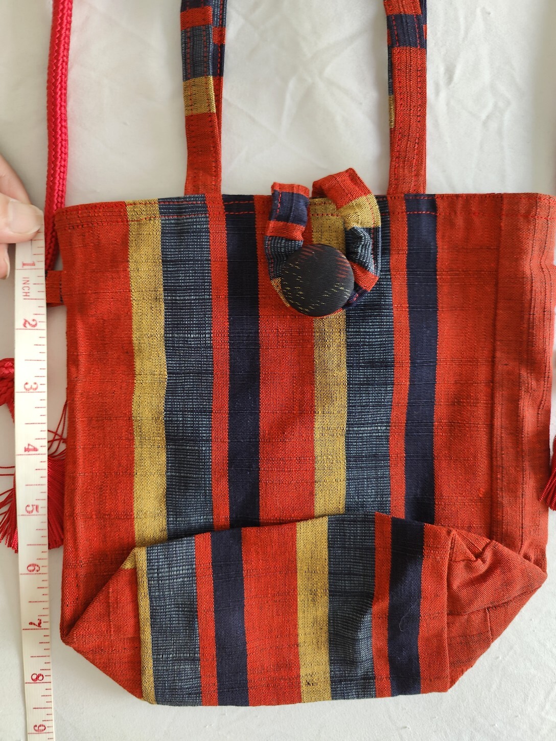 как выглядит Handmade Japanese Kimono Reversible Small Body Bag, Flower Print / Stripes фото