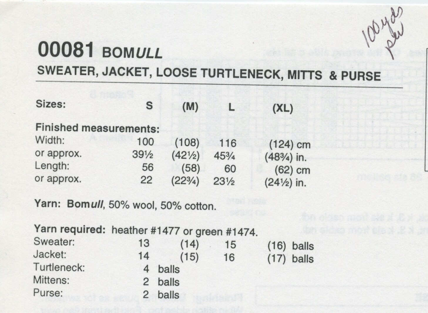 Marks Kattens Knit Pattern 00081 Sweater, Jacket, Loose Turtleneck Purse Mitts