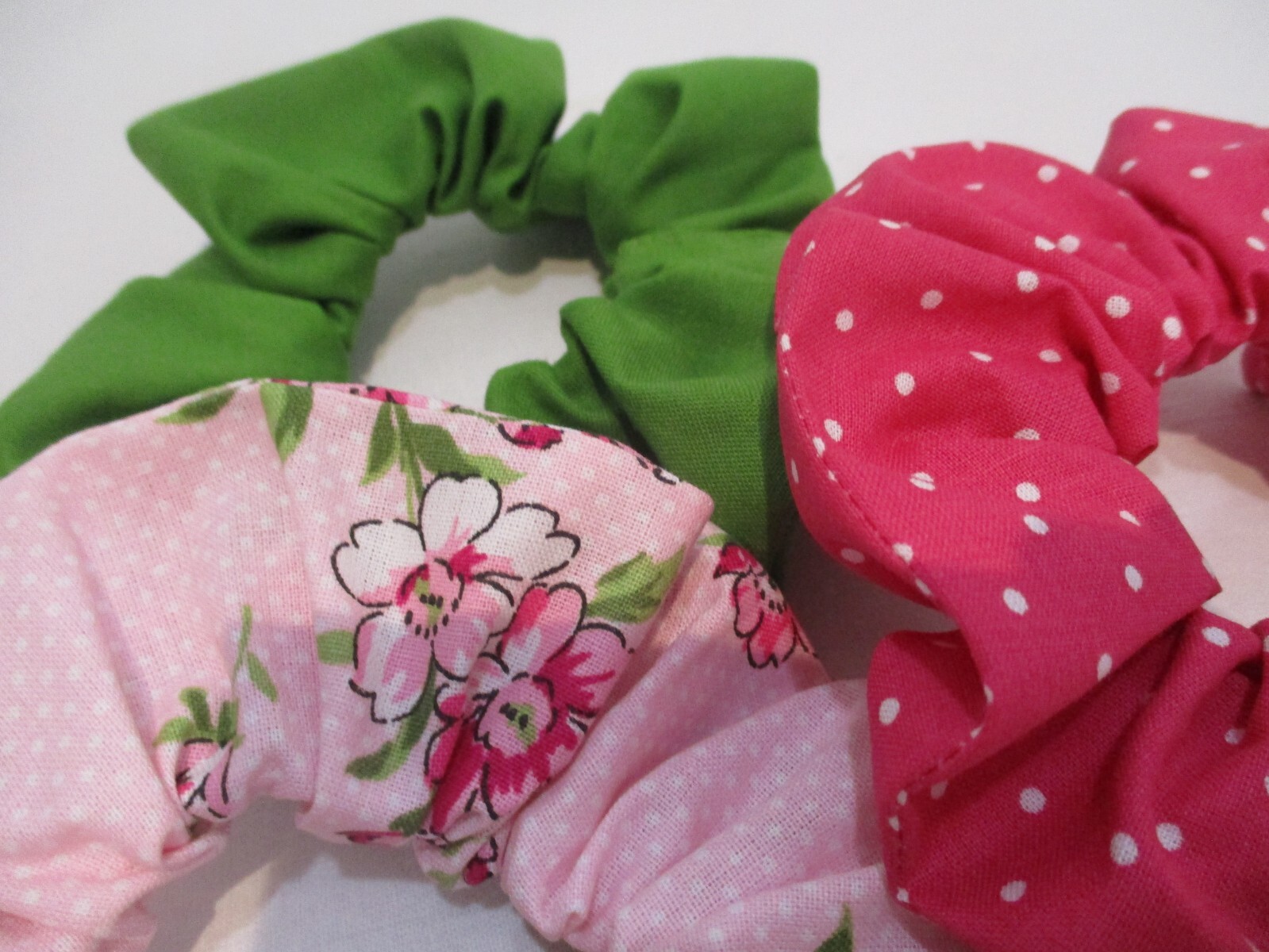 Handmade Scrunchies, U-PICK Your Favorite, 100 Cotton, Set of 3, 5 Dia., New.
