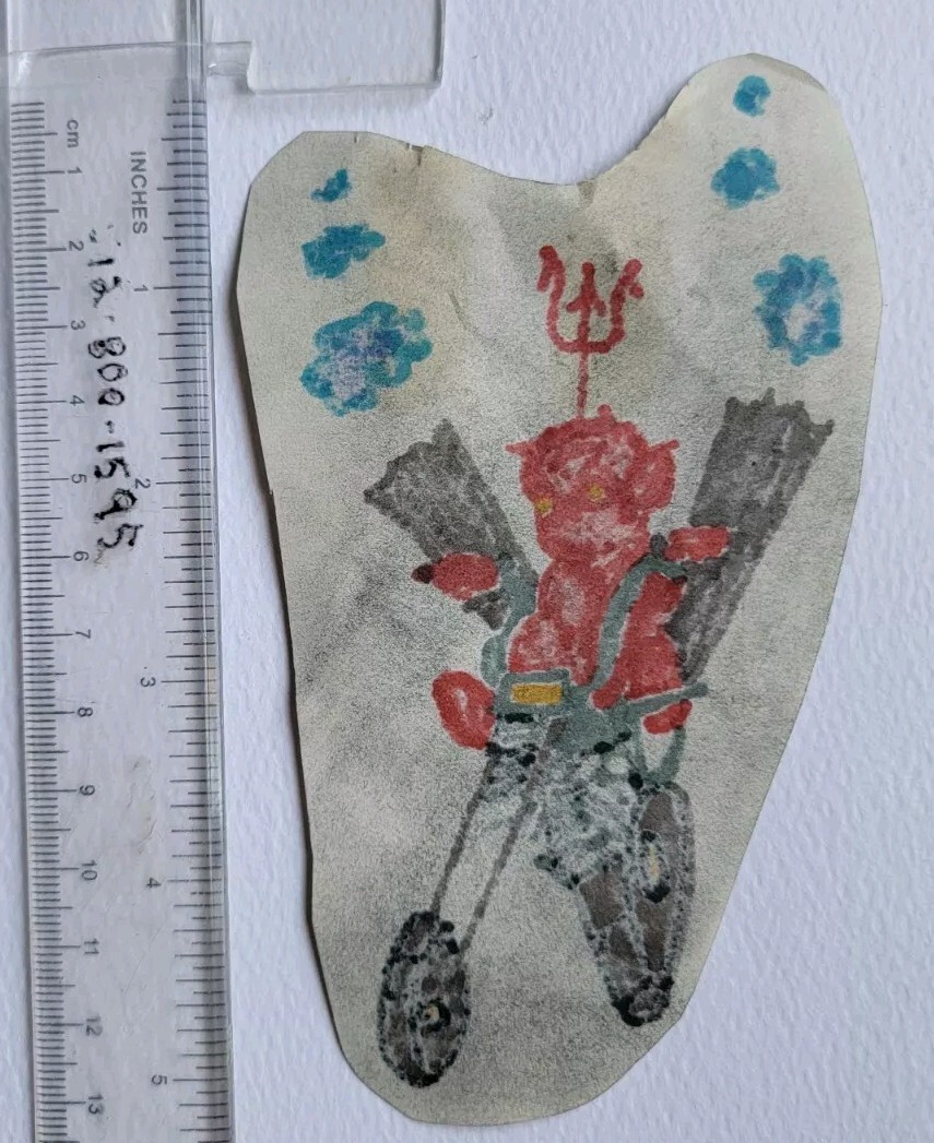 original produx color antique colorado hot stuff devil biker tattoo flash cut