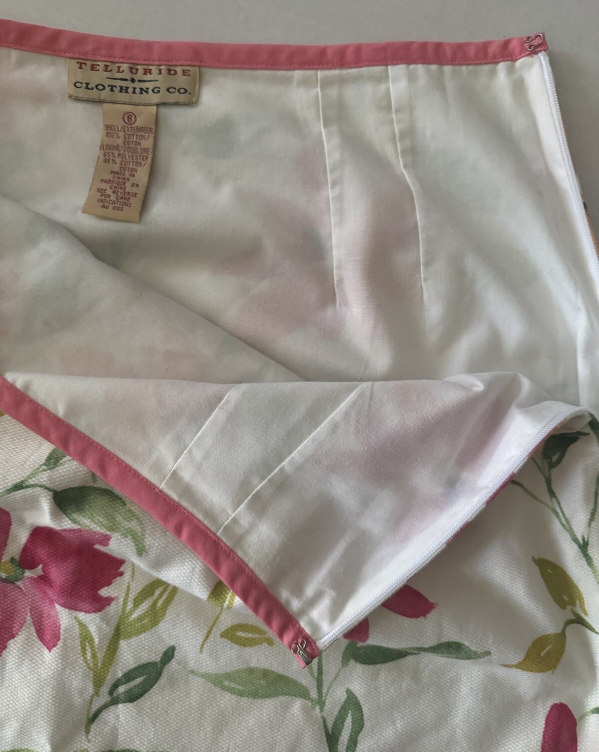 Telluride Clothing Co Floral Women s Skirt Vintage, US 8, Lined, Pink Trim Band