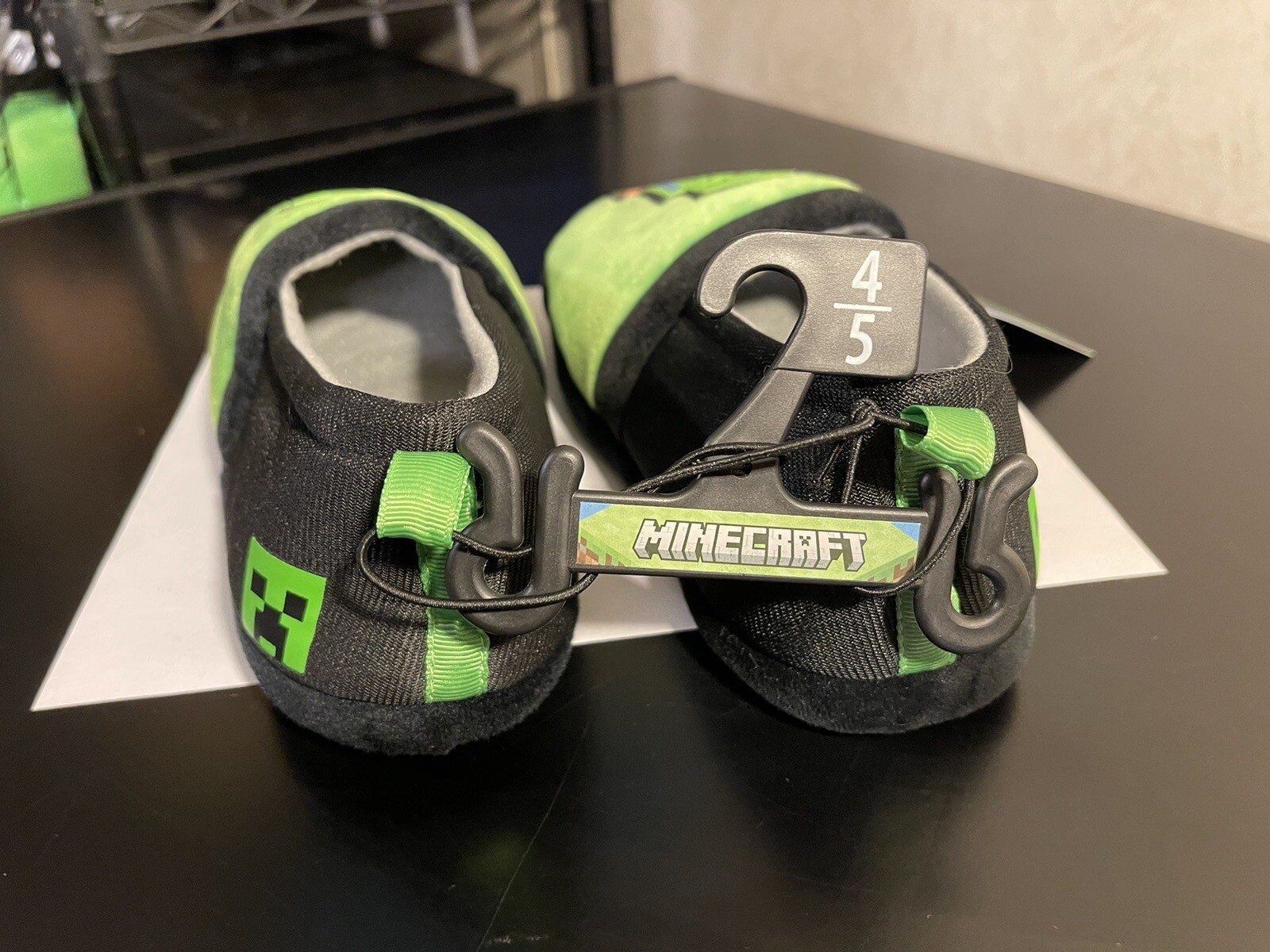 Boys Minecraft Creeper License Slippers Easy On/Off Slip-On Style Size 4/5 New