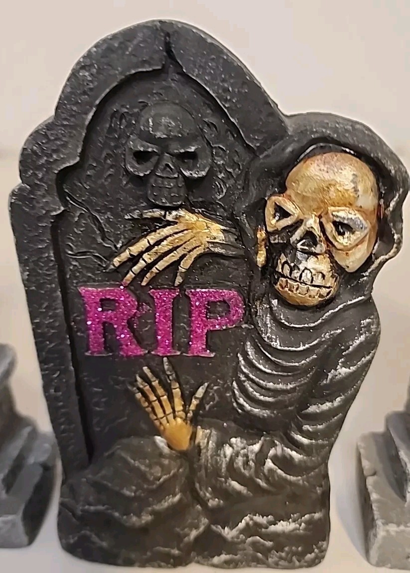 • Set Of 3 - 6" Stone Halloween Tombstones