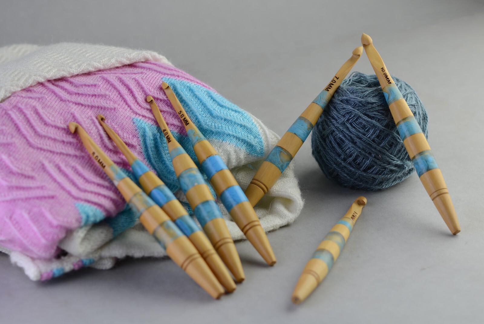 Wooden Set of 7 Amazing Resin Designed Ergonomic Crochet Hooks Set 4 MM - 10 MM
