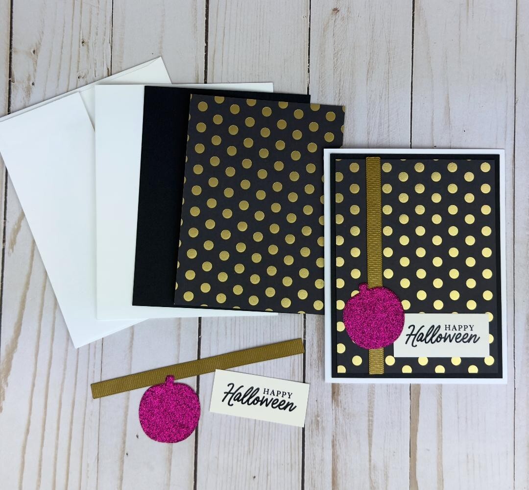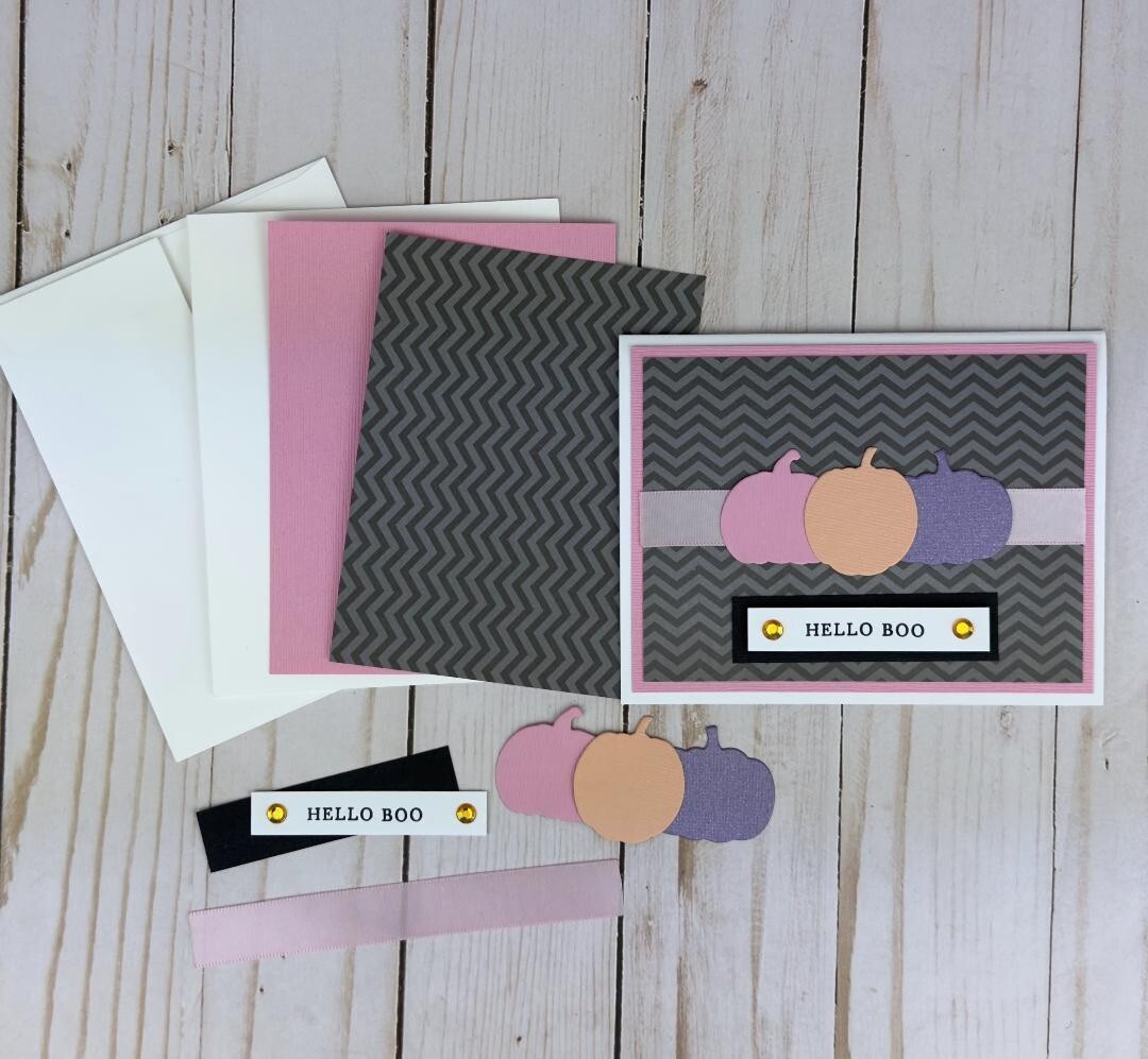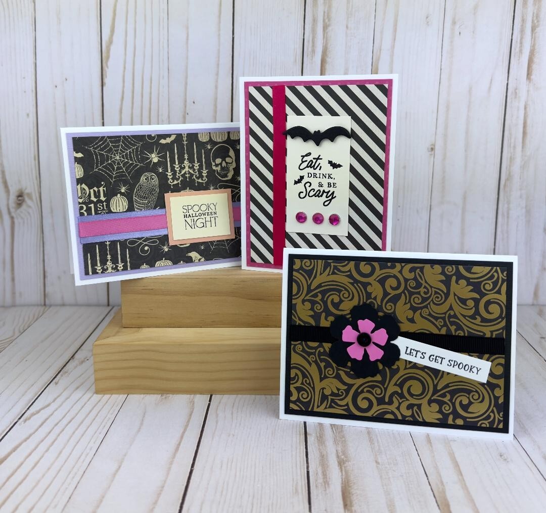 Halloween Card Kit to Make Your Own Cards, Set of 6 Black and Pink A2 Cards