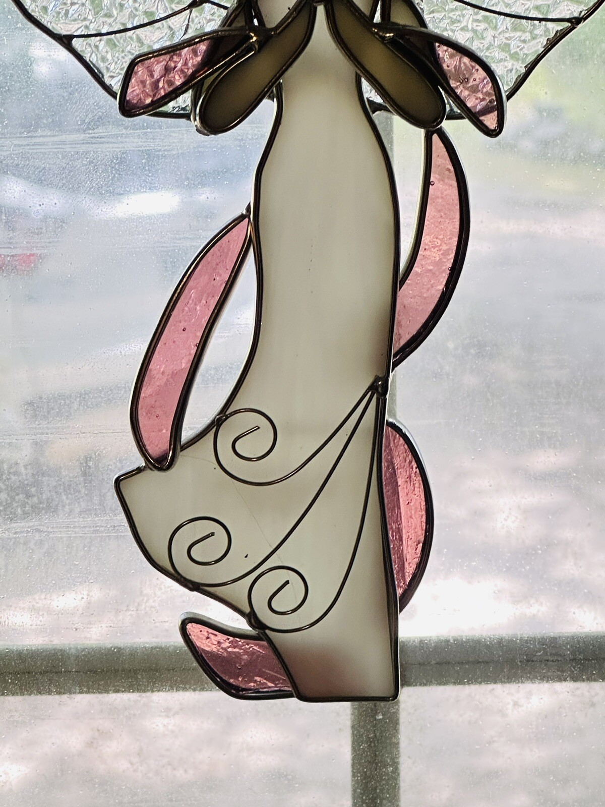 Stained Glass Praying Angel With Open Wings Pink White 12 Sun Catcher Hanging