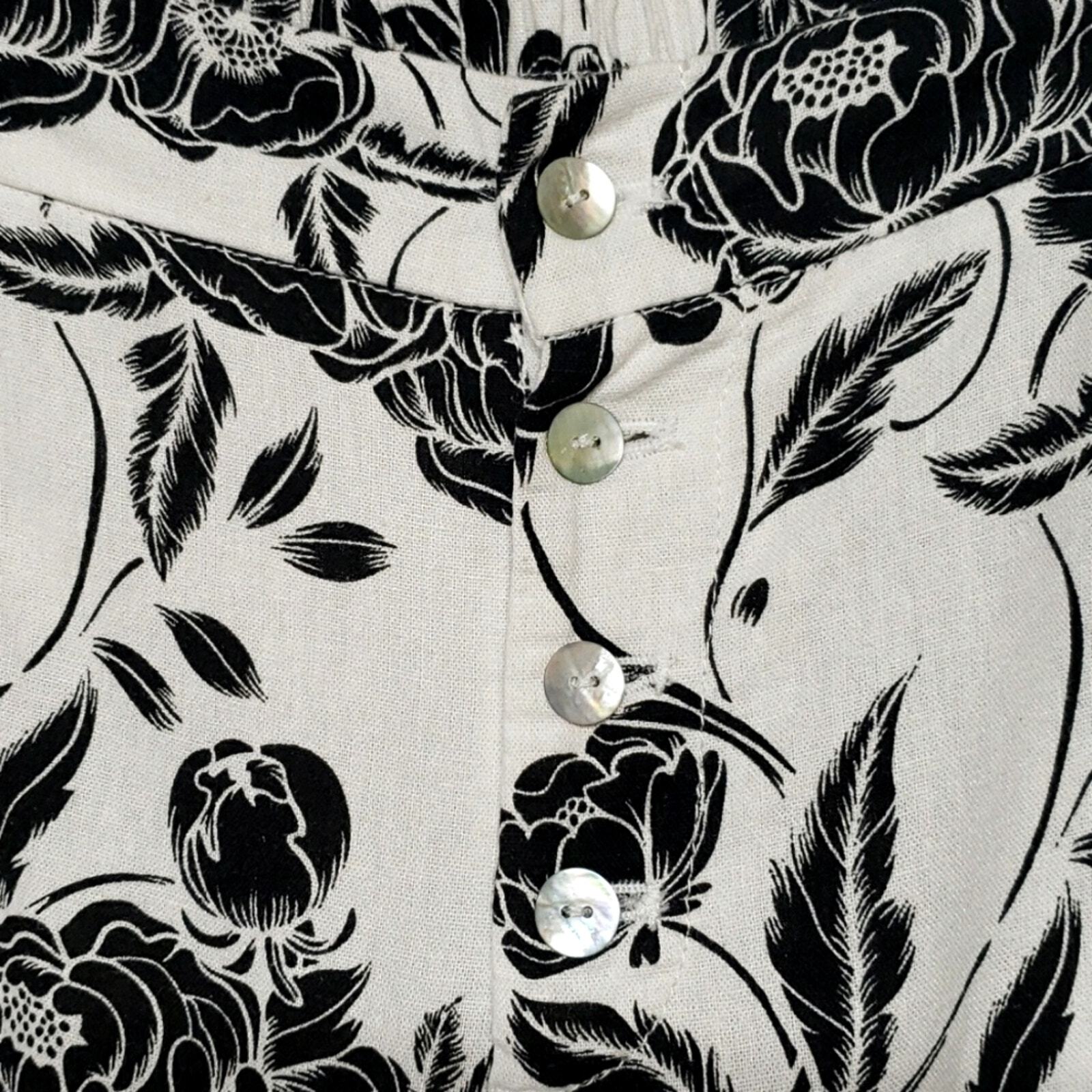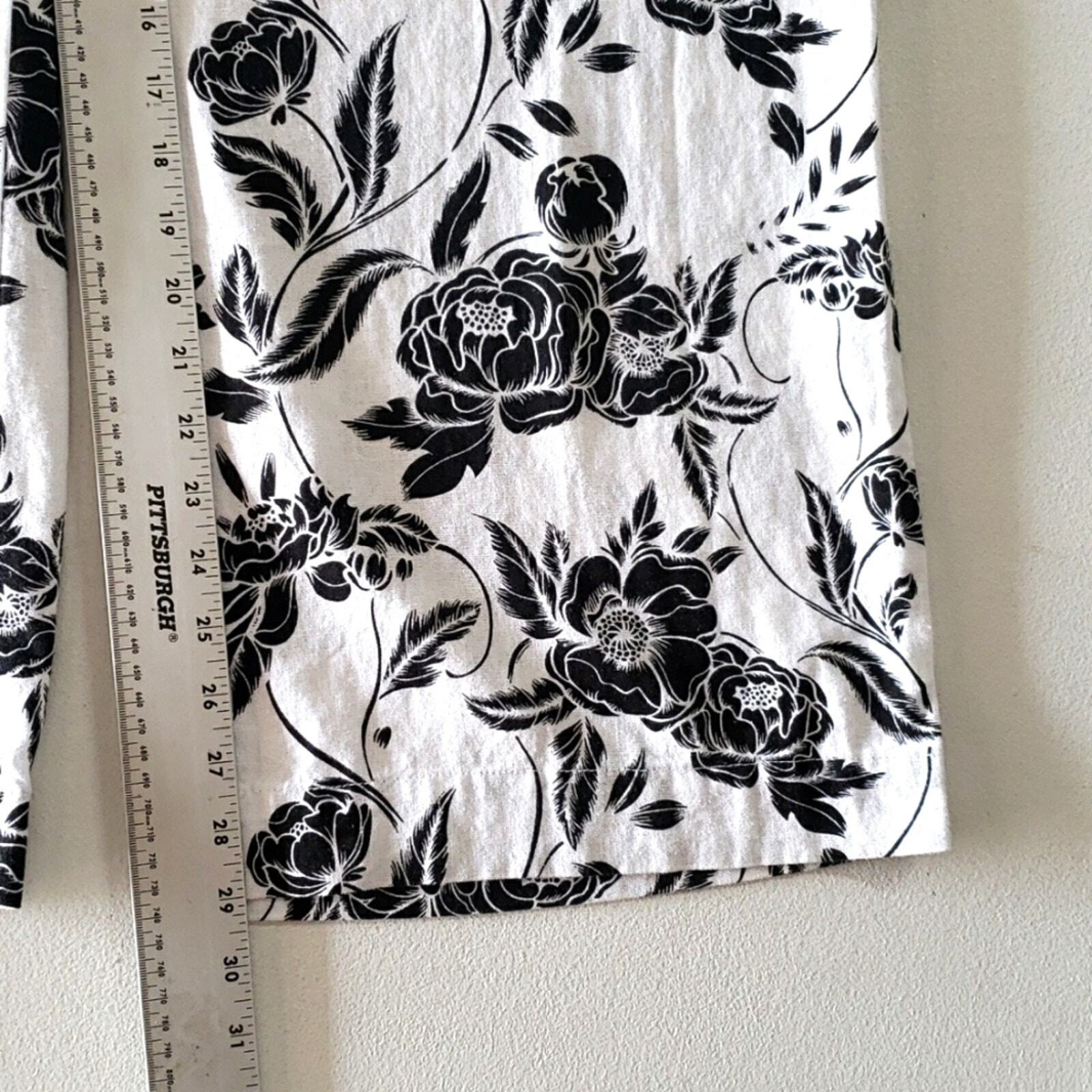 Calvin Klein Linen Wide Leg Crop Women's Pants Floral Black White Size 8