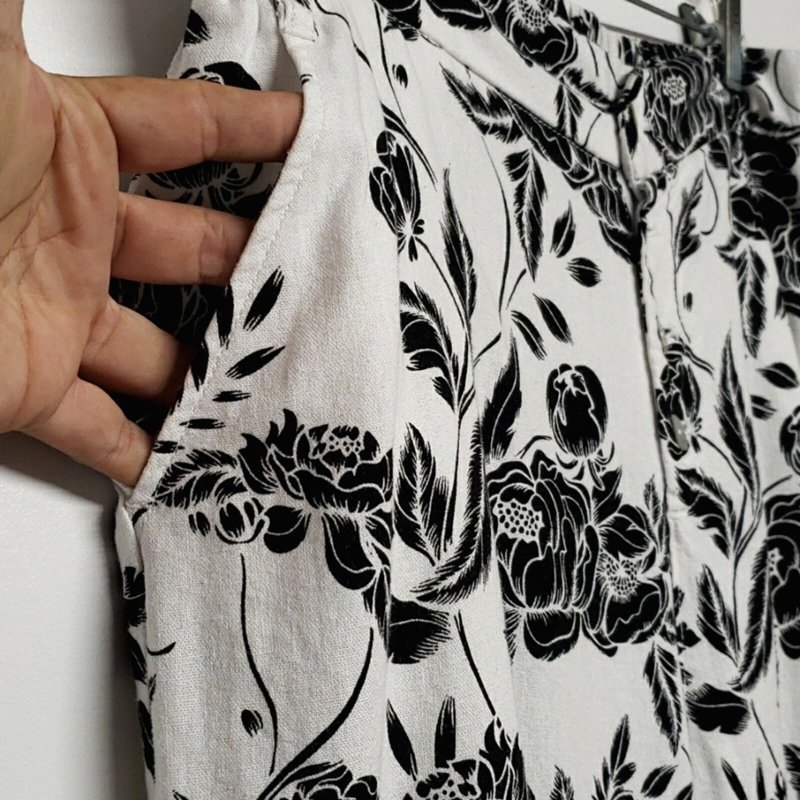 как выглядит Calvin Klein Linen Wide Leg Crop Womens Pants Floral Black White Size 8 фото