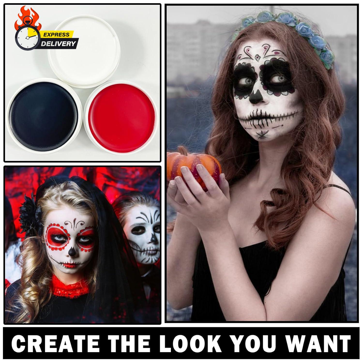 3PCS Clown Makeup Kit Black White Red Face Body Paint Professional Oil Based Bod