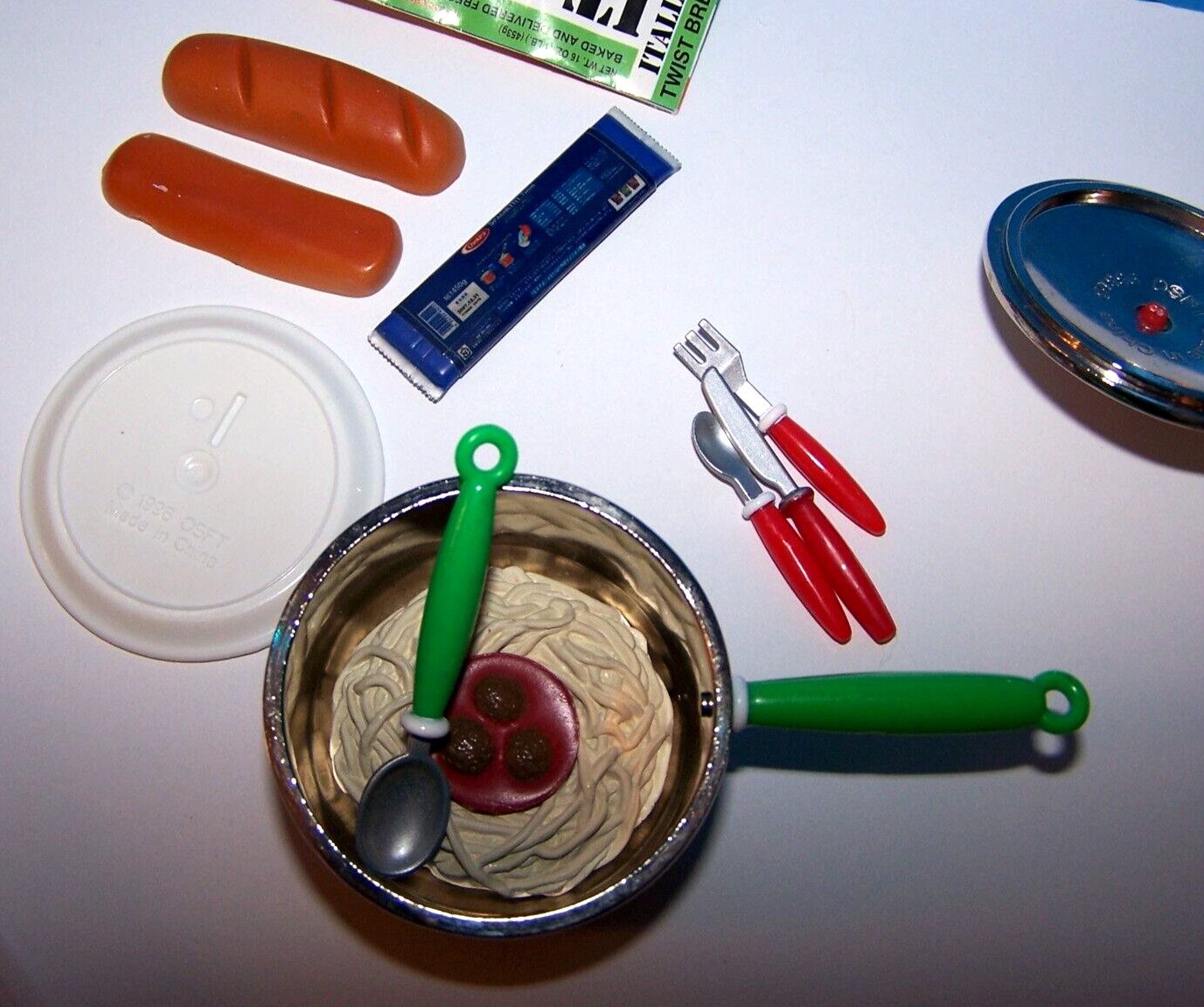 TYCO Kitchen Littles Italian Bread Pasta Spaghetti Metal Pan Lid Barbie Food Lot