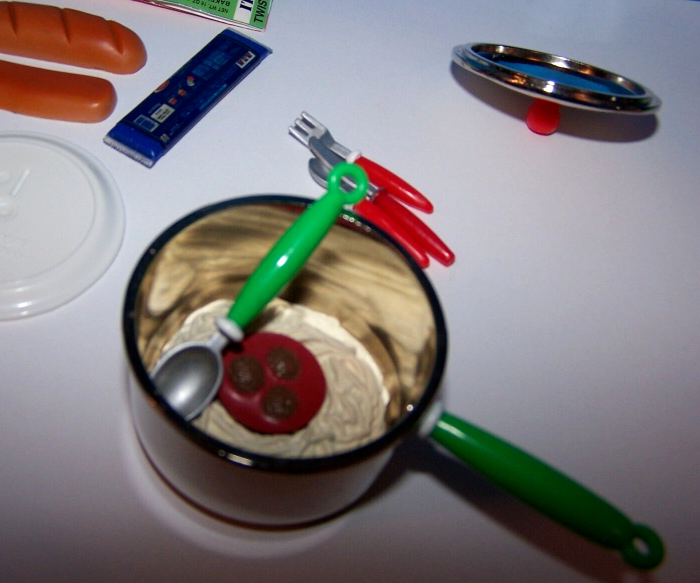 • TYCO Kitchen Littles Italian Bread Pasta Spaghetti Metal Pan Lid Barbie Food Lot
