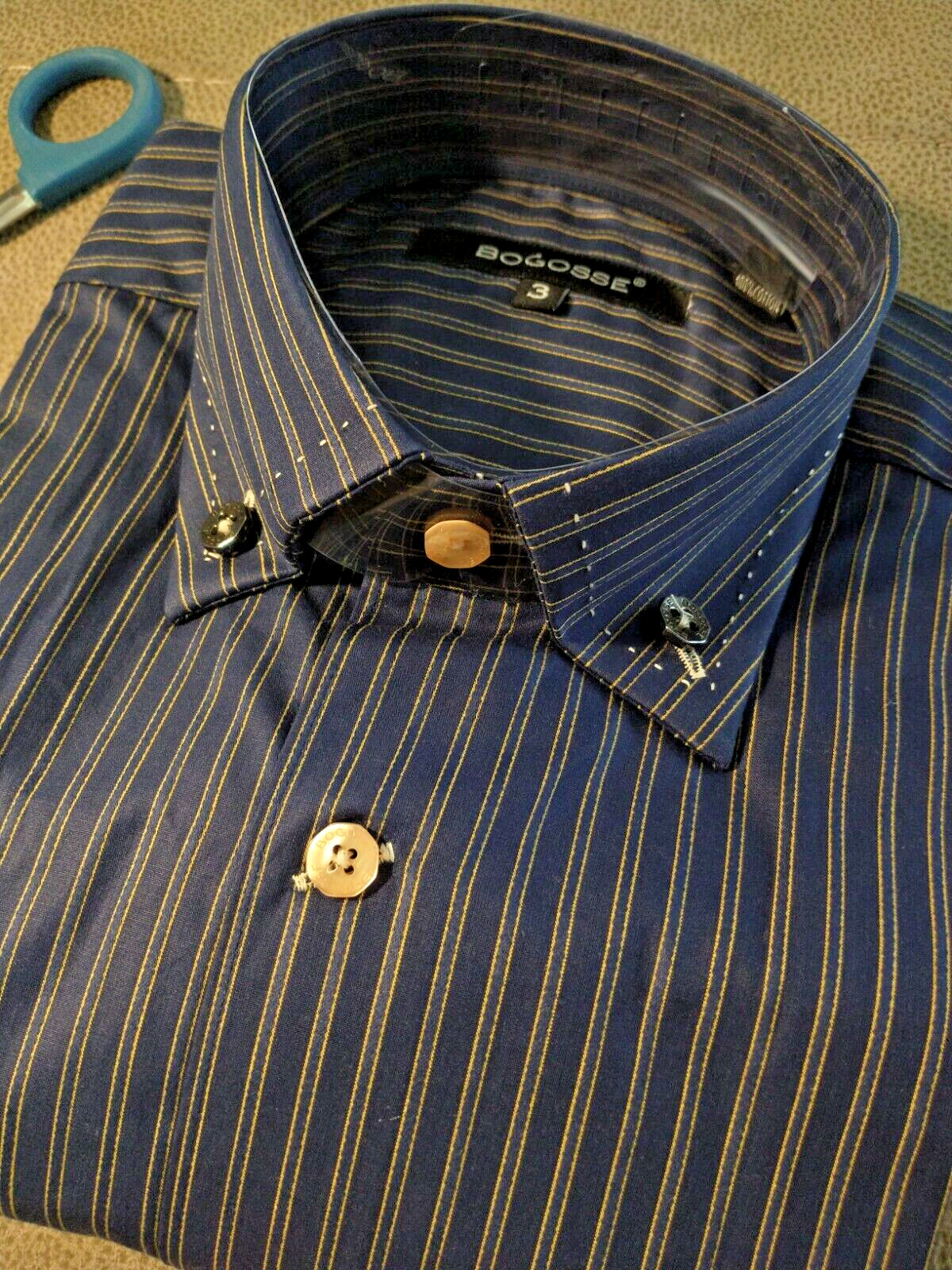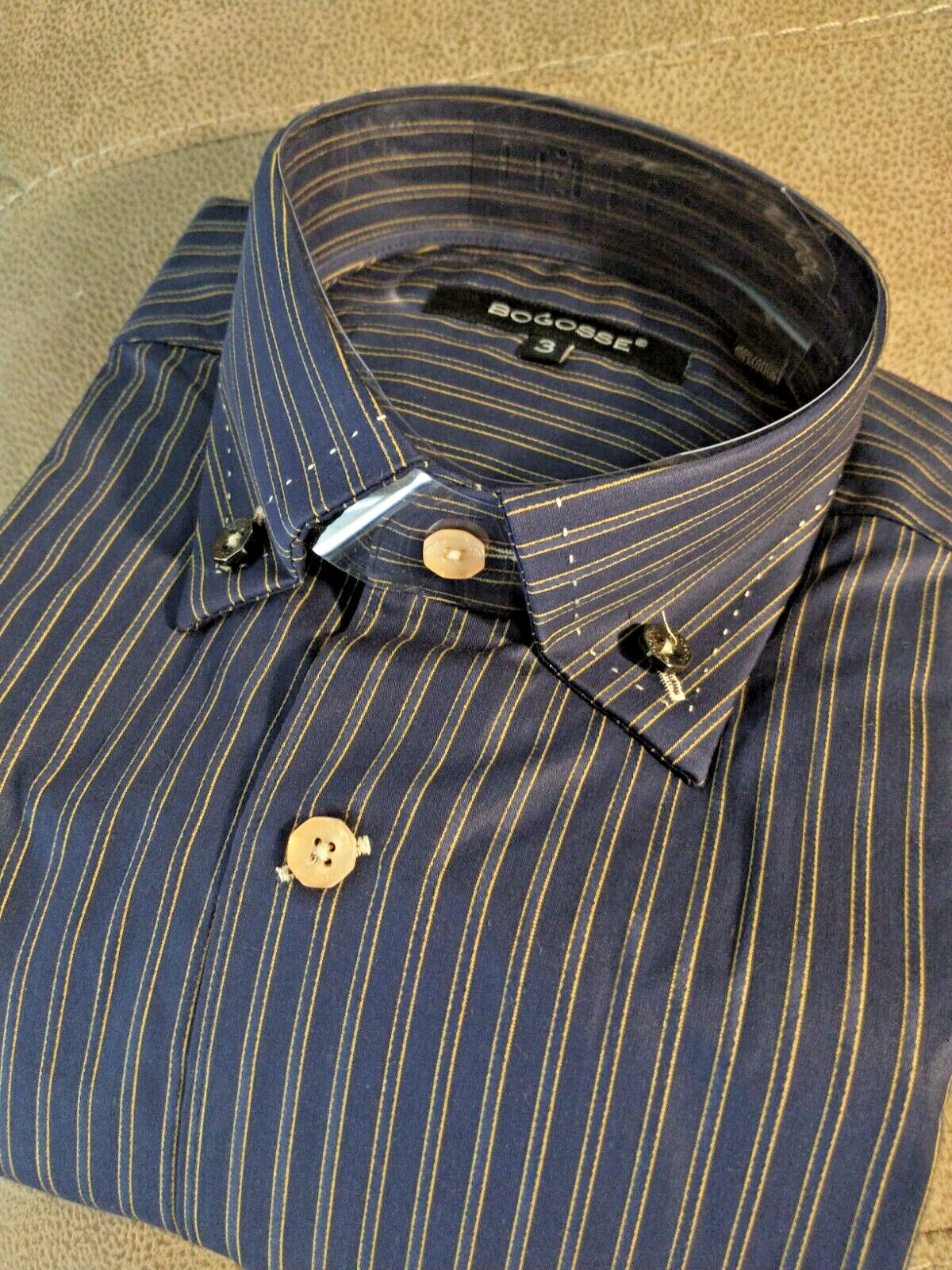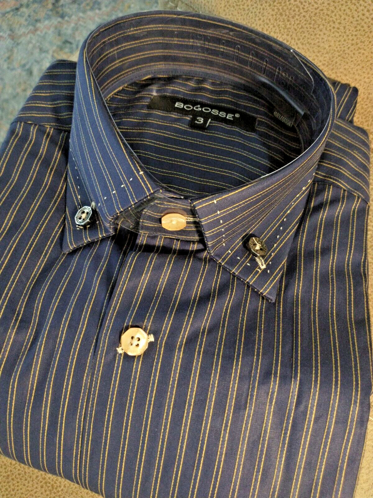 NWT Bogosse men's size 3 Medium Long sleeve button down Shirt Striped double poc