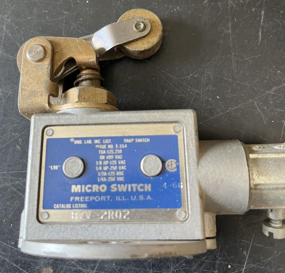Vintage MICRO SWITCH BZV-2RQ2 LIMIT SWITCH LIMIT SWITCH W/ROLLER 15A -125A