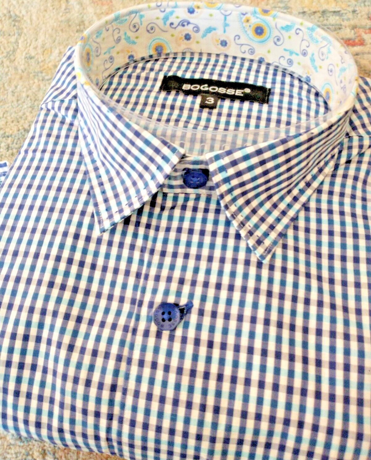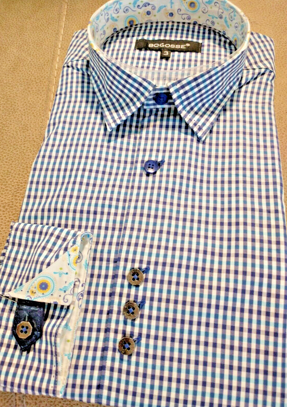 NWT Bogosse men's size 3 Medium Long sleeve button down Shirt Fancy Jacq Checks/