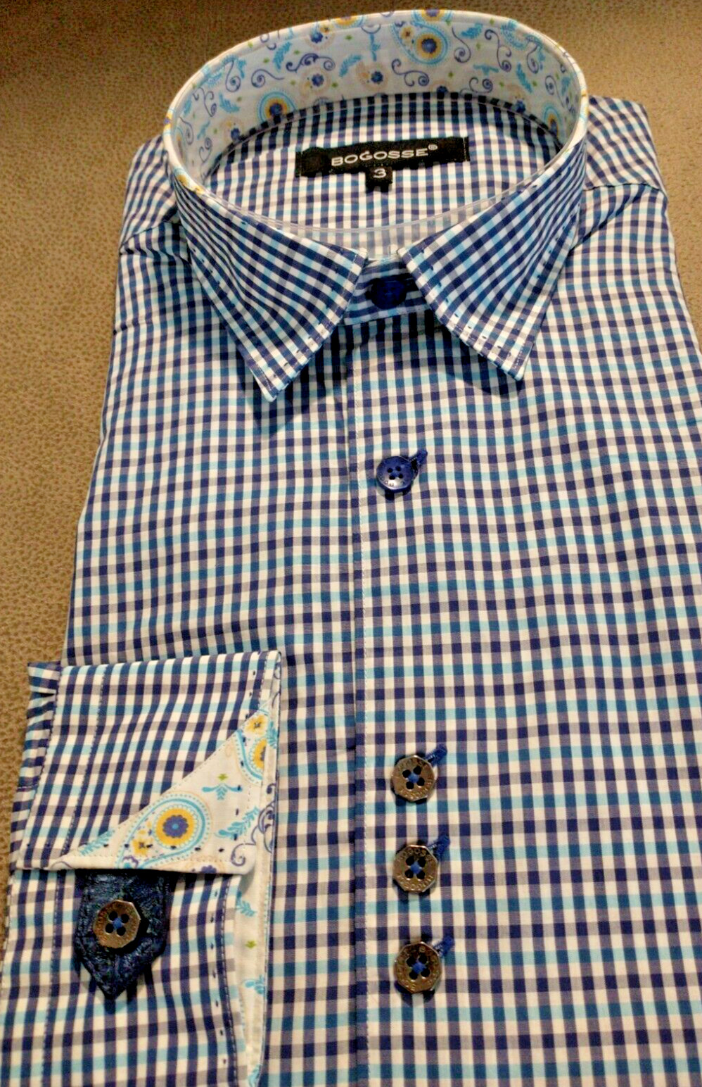 как выглядит NWT Bogosse mens size 3 Medium Long sleeve button down Shirt Fancy Jacq Checks/ фото