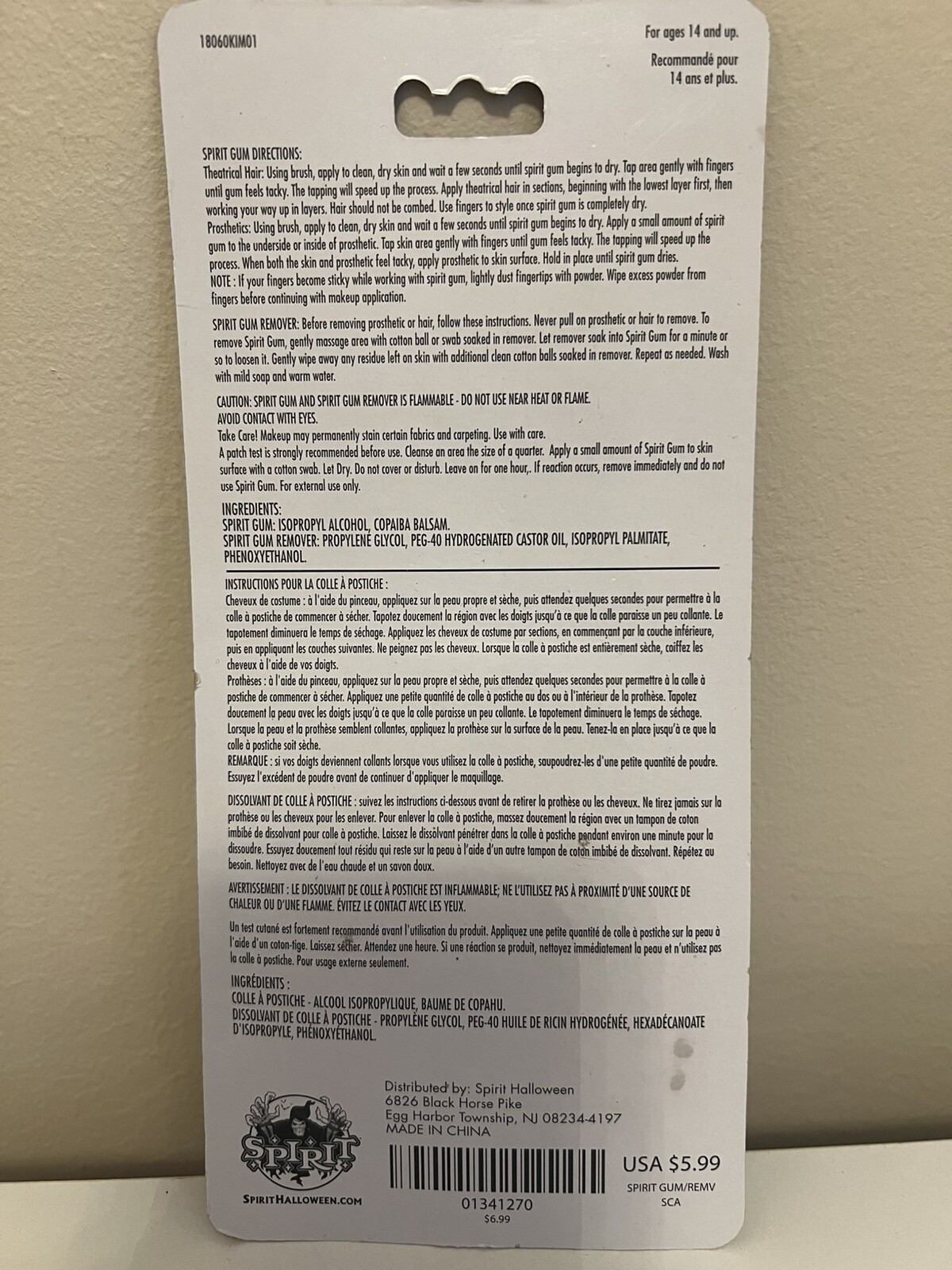 • Spirit Gum Adhesive 0.25 FL Oz Remover 0.5 FL Oz Halloween Make-Up Accessory