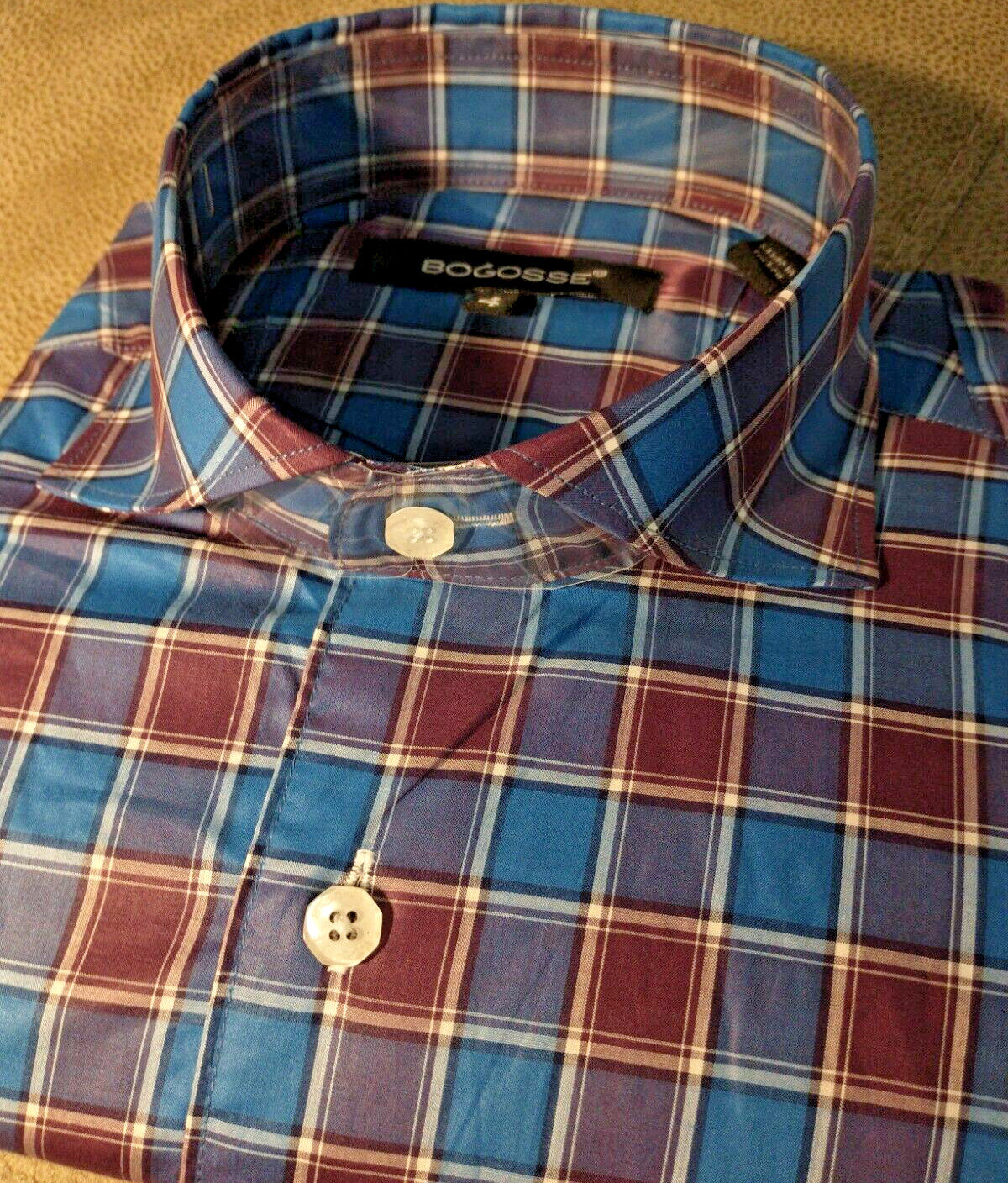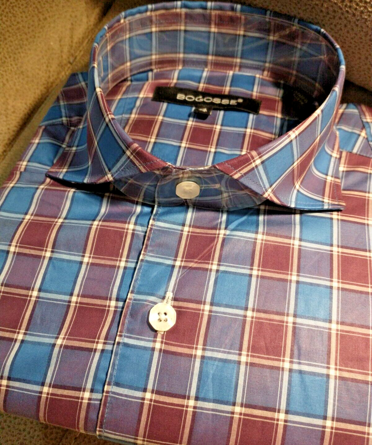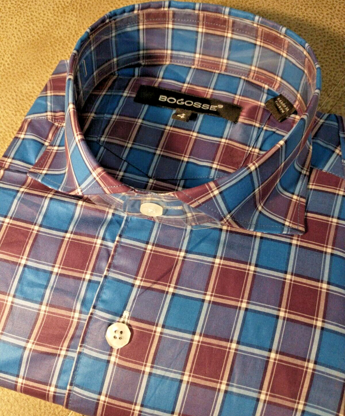 NWT Bogosse men's size 4 Large Long sleeve button down Shirt Fancy Checks Patter