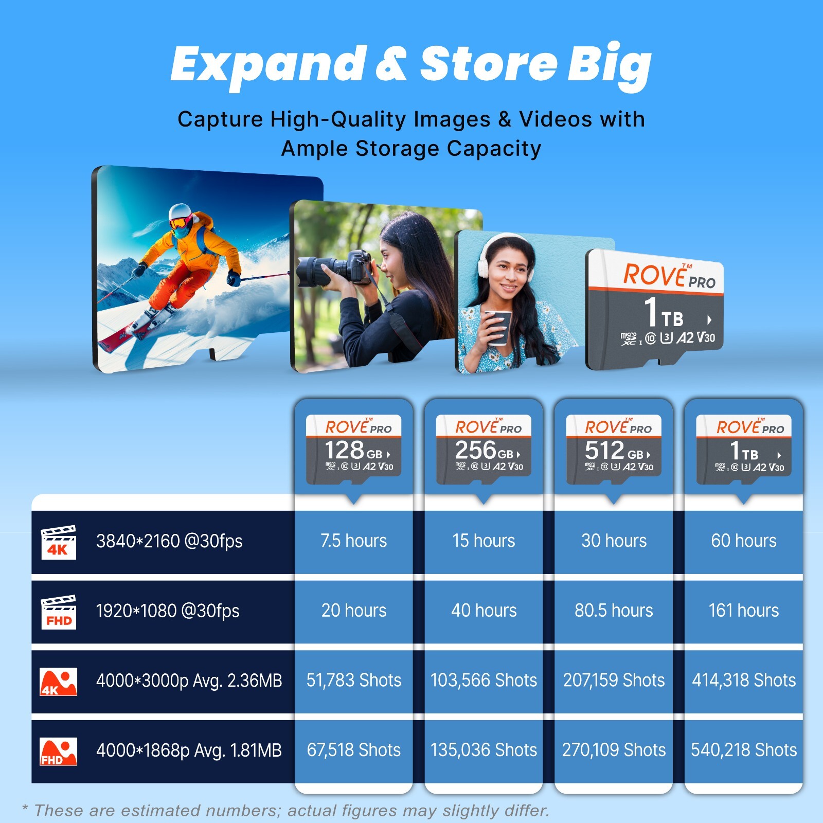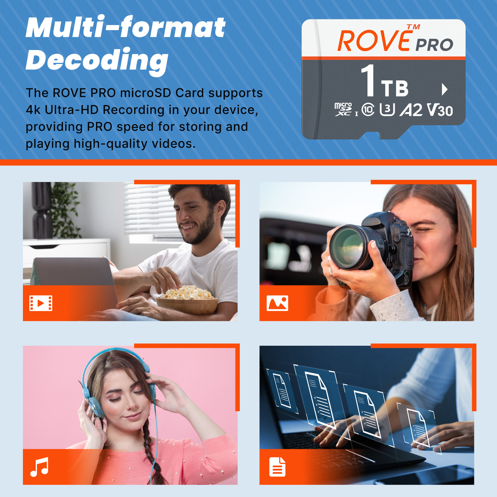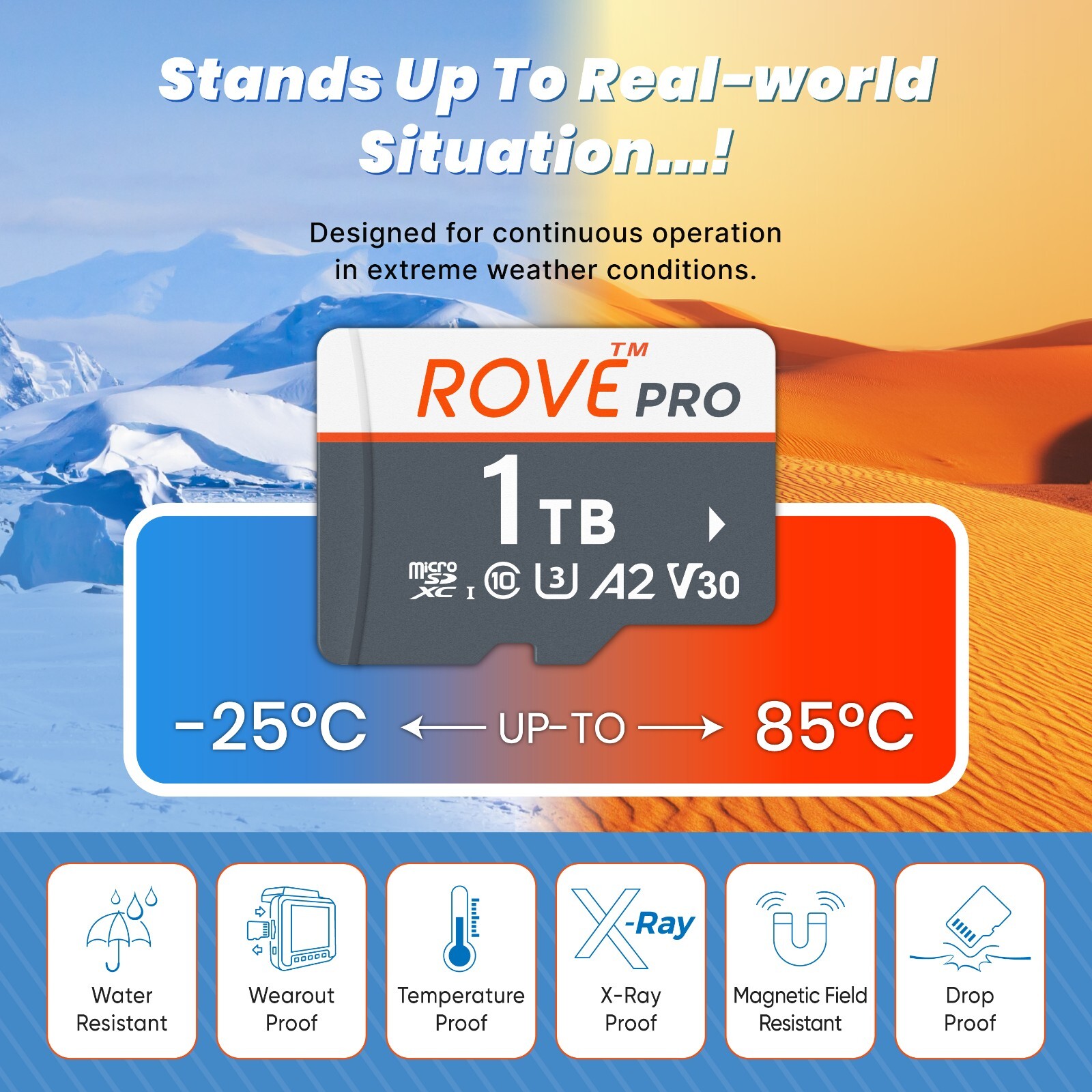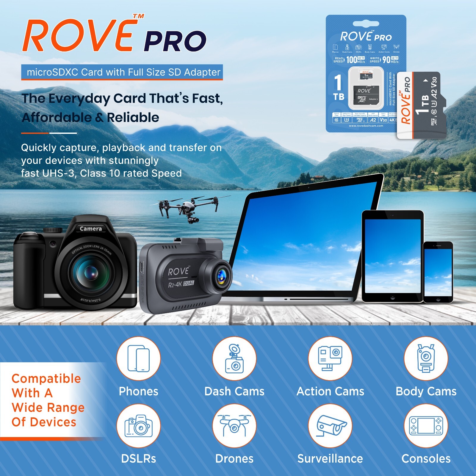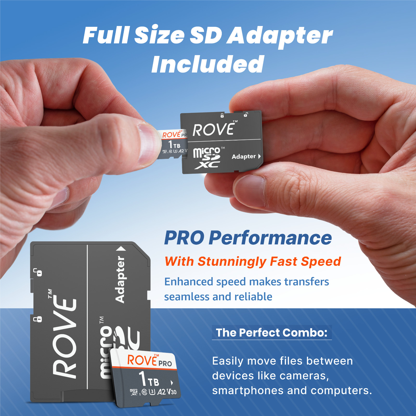 ROVE PRO Micro SD Card 1 TB Memory Card with Full Size SD Adapter