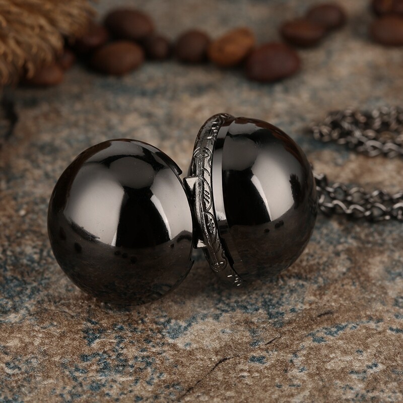 как выглядит Smooth Black Ball Mini Small Size Quartz Pocket Watch with Chain Pendant Watches фото