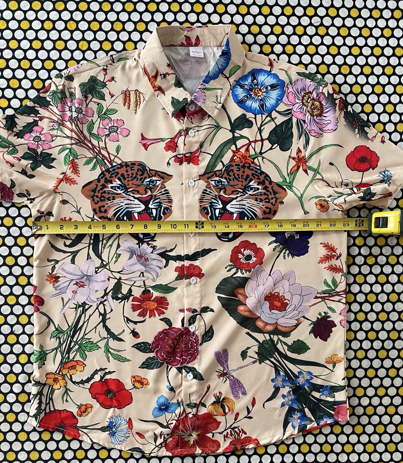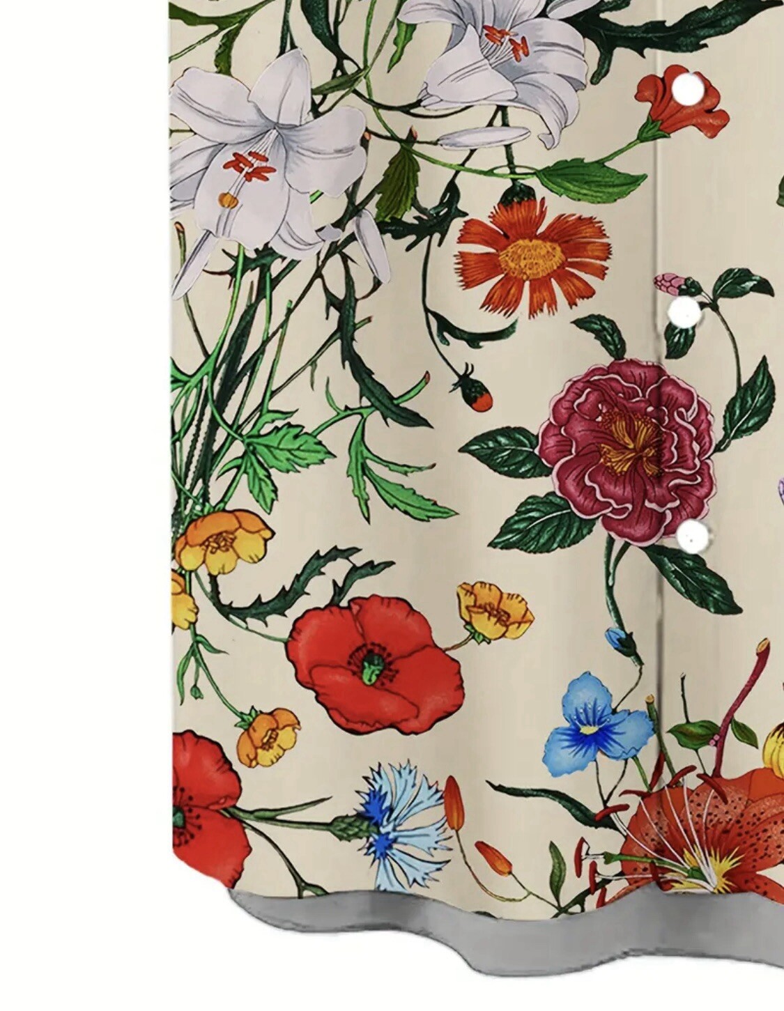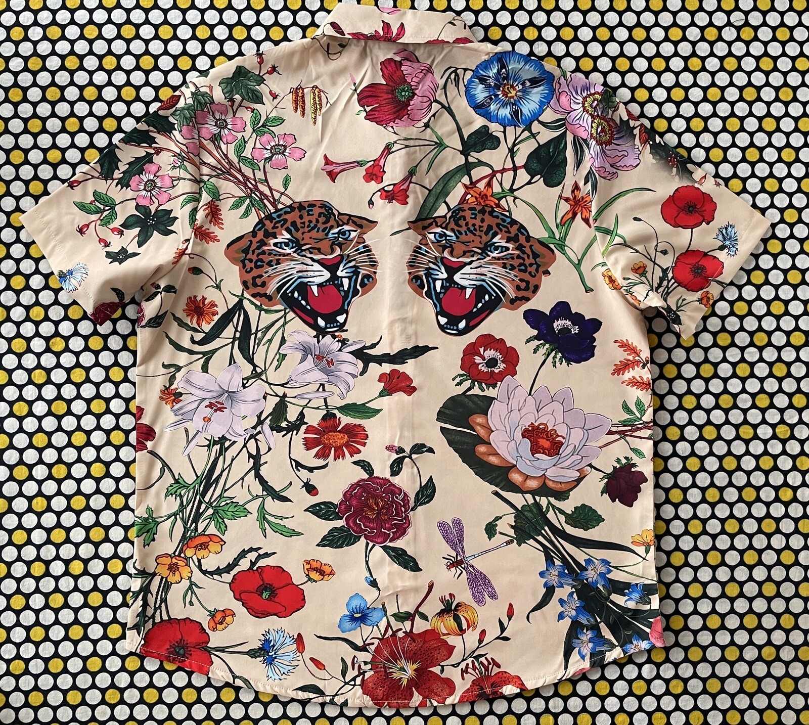 как выглядит Mens Size L Tigers and Flowers Pattern Button Up Short Sleeve Shirt фото