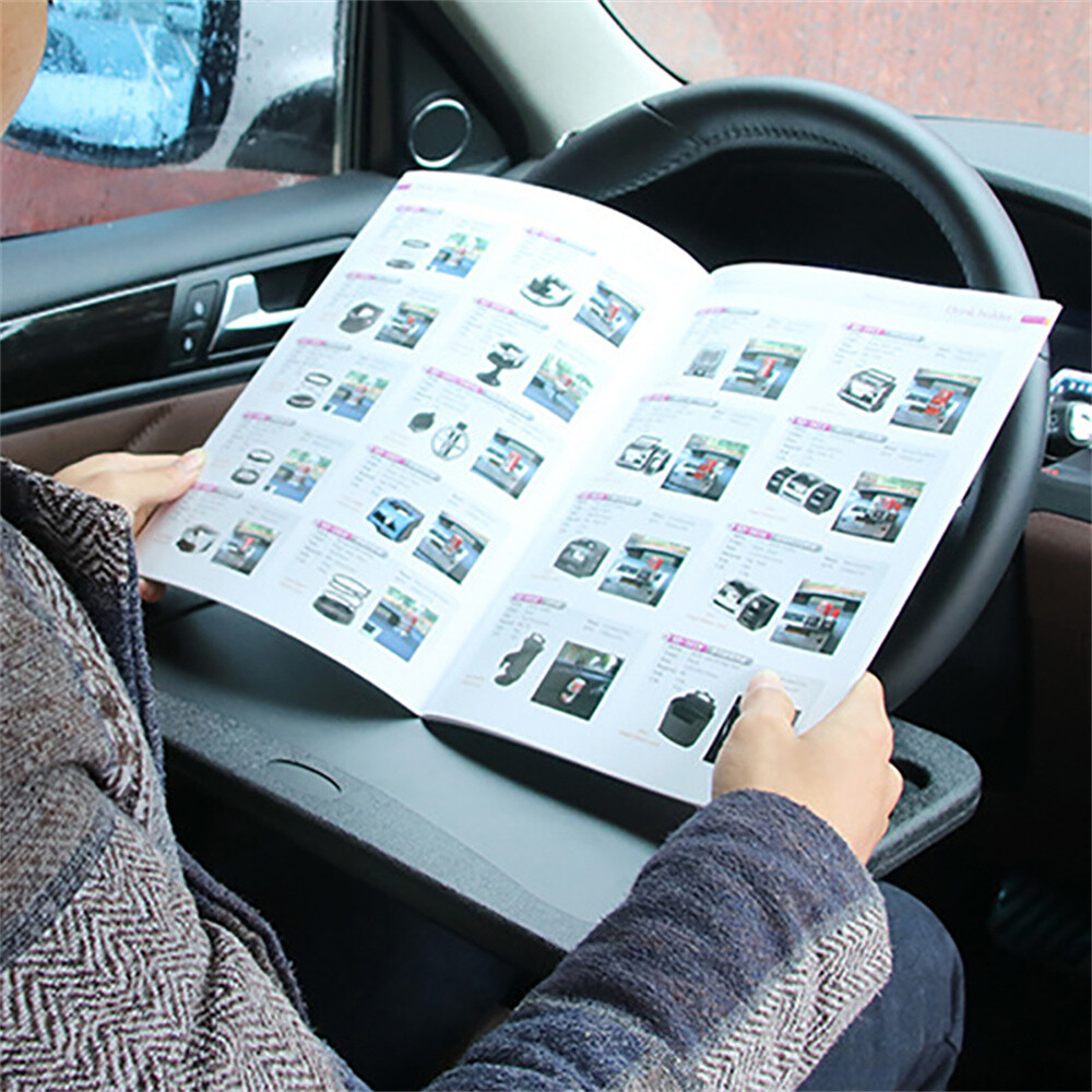 • Car Steering Wheel Tray Desk Two Sided For Laptop Drink Food Work Table Holder
