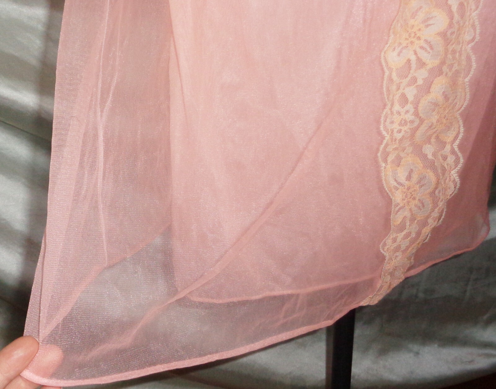 как выглядит NEGLIGEE / PEIGNOIR Night Gown Vintage Erica Loren New York Layered Peach Sheer фото