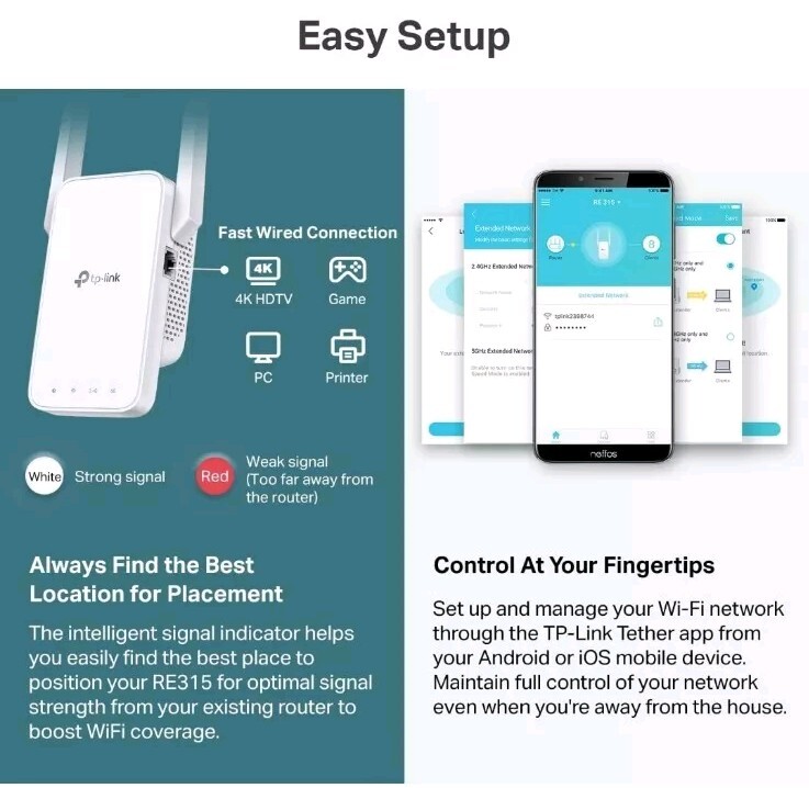 TP-Link RE315 AC1200 WiFi Extender Dual Band 1500 Sq Ft Booster New