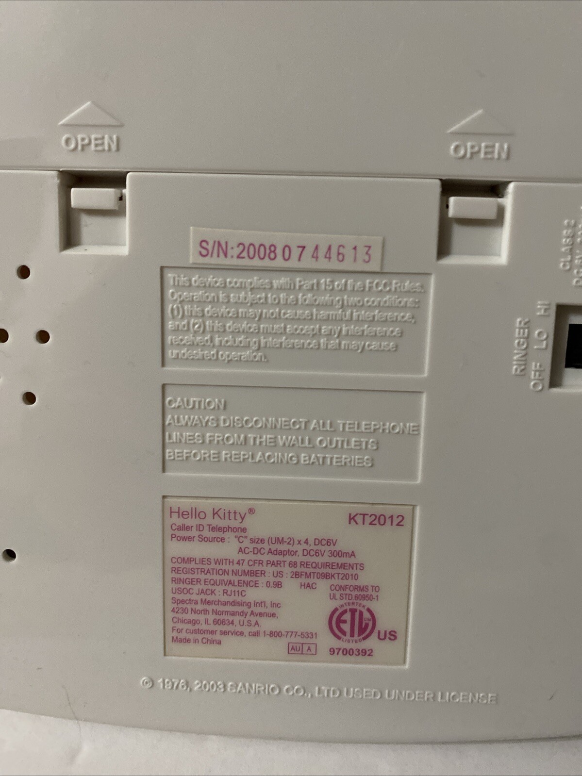 Sanrio Hello Kitty Angel Caller ID Telephone Pink Landline 2003 KT2012