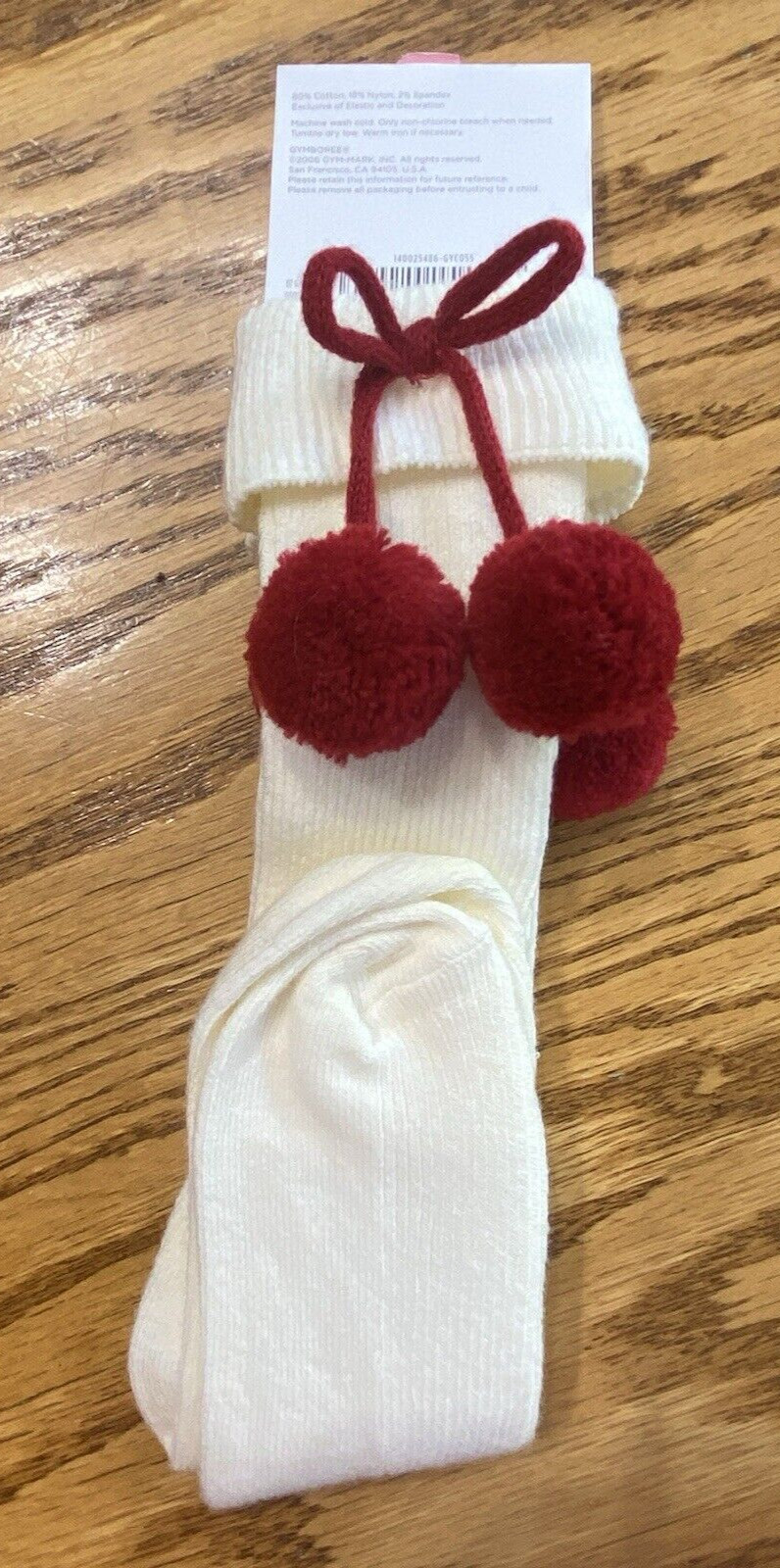 NEW Gymboree Mountain Cabin Red Pom-Pom Socks Girls 3-4 Years, Shoe Size 9-10