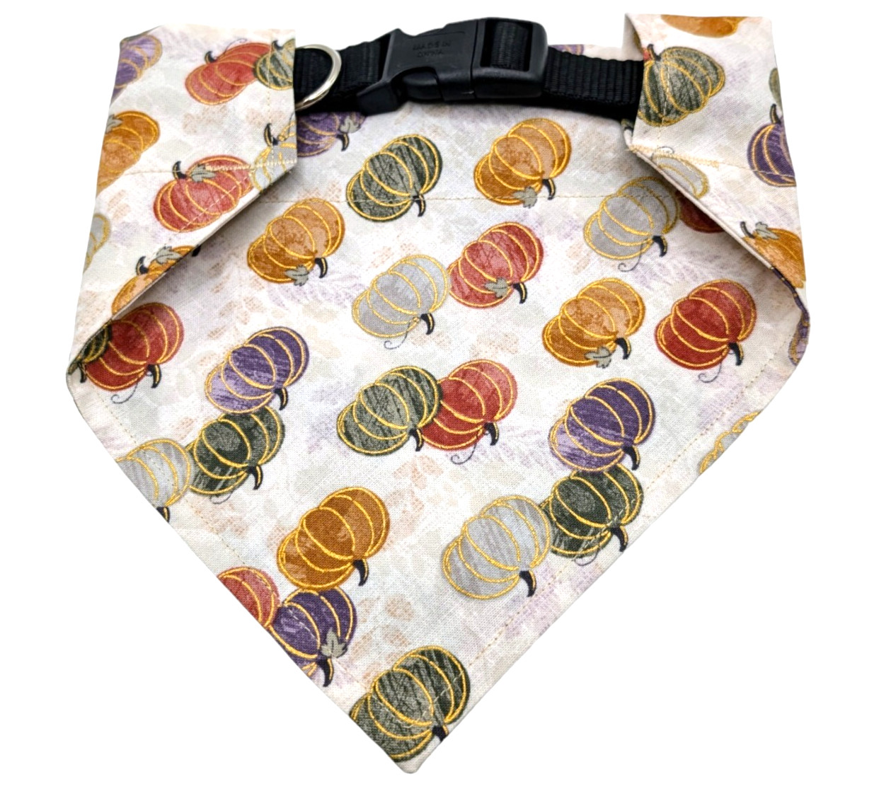 Thanksgiving Fall Dog Bandana OVER COLLAR Dog Scarf Slide on Bandanas Pumpkins