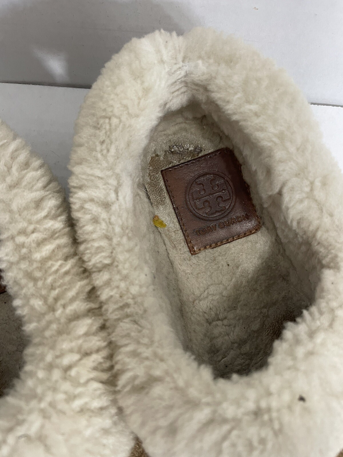Tory Burch Shearling Mule Slipper Coley Suede Camel Brown Size 5 READ NOTE