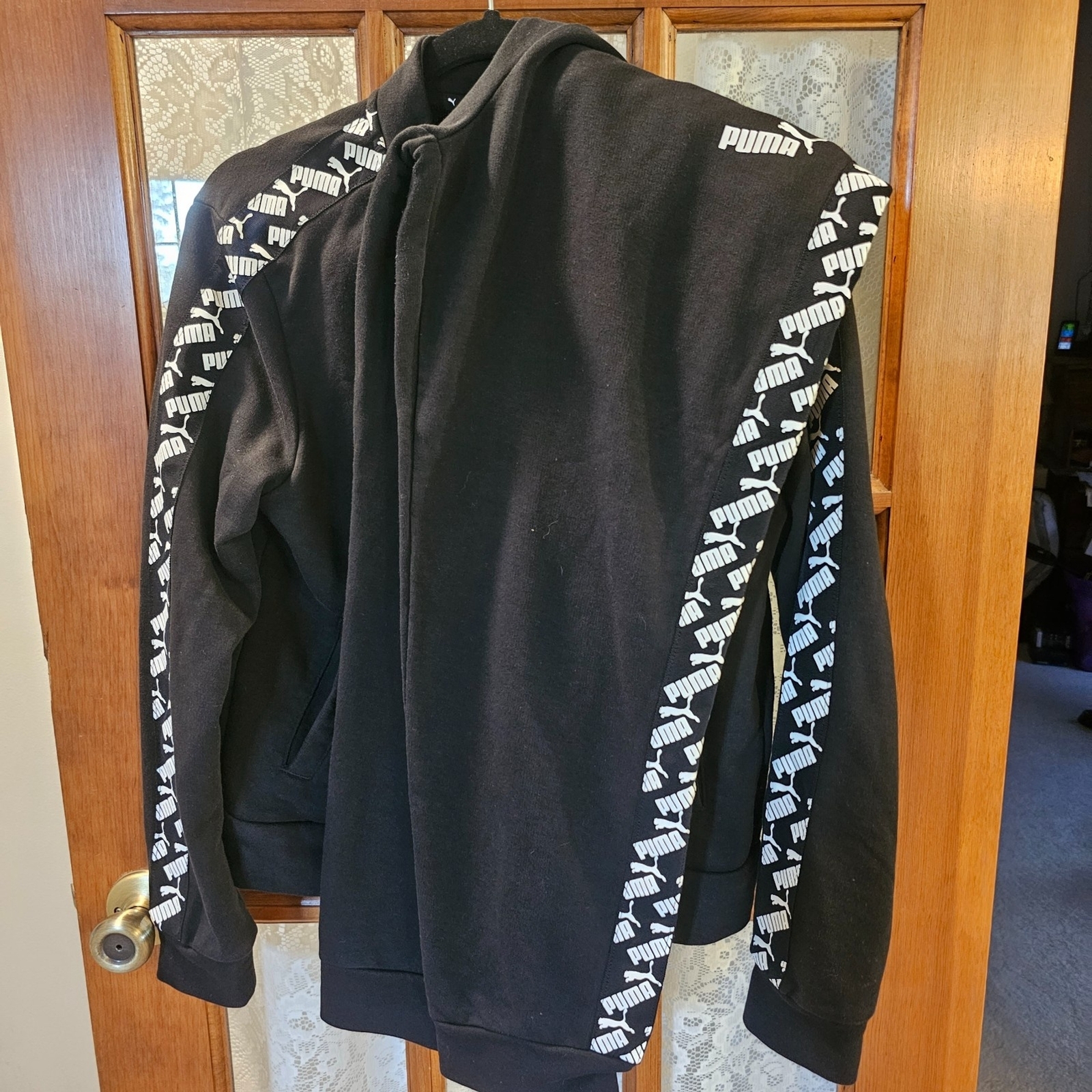 Puma Amplified Women's Black Track Suit, Full Zip Jacket Large Pants XL
